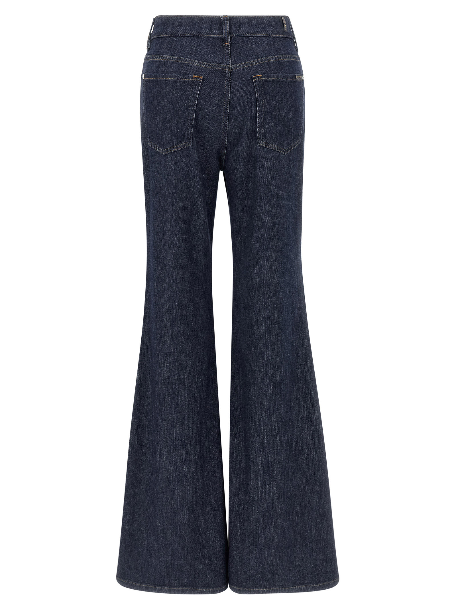 'Retro Flare' джинси з еластичного бавовняного деніму з контрастною строчкою, висока талія, широкий крій з додатковим розкльошеним кроєм, застібка на блискавці та гудзику спереду, п'ять кишень.