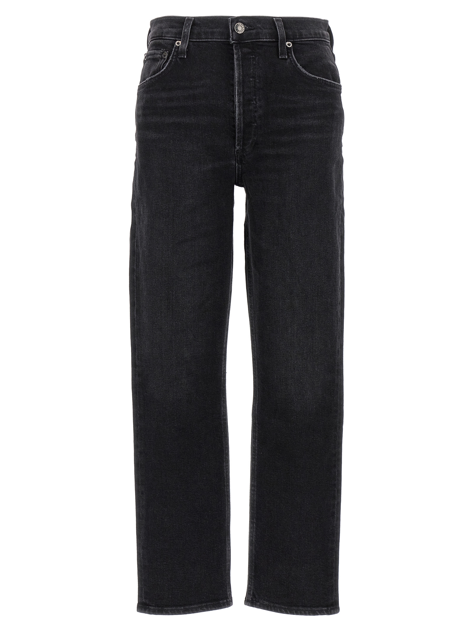 'Riley long' stretch cotton jeans with 'Panoramic' wash, mid waist and straight leg.