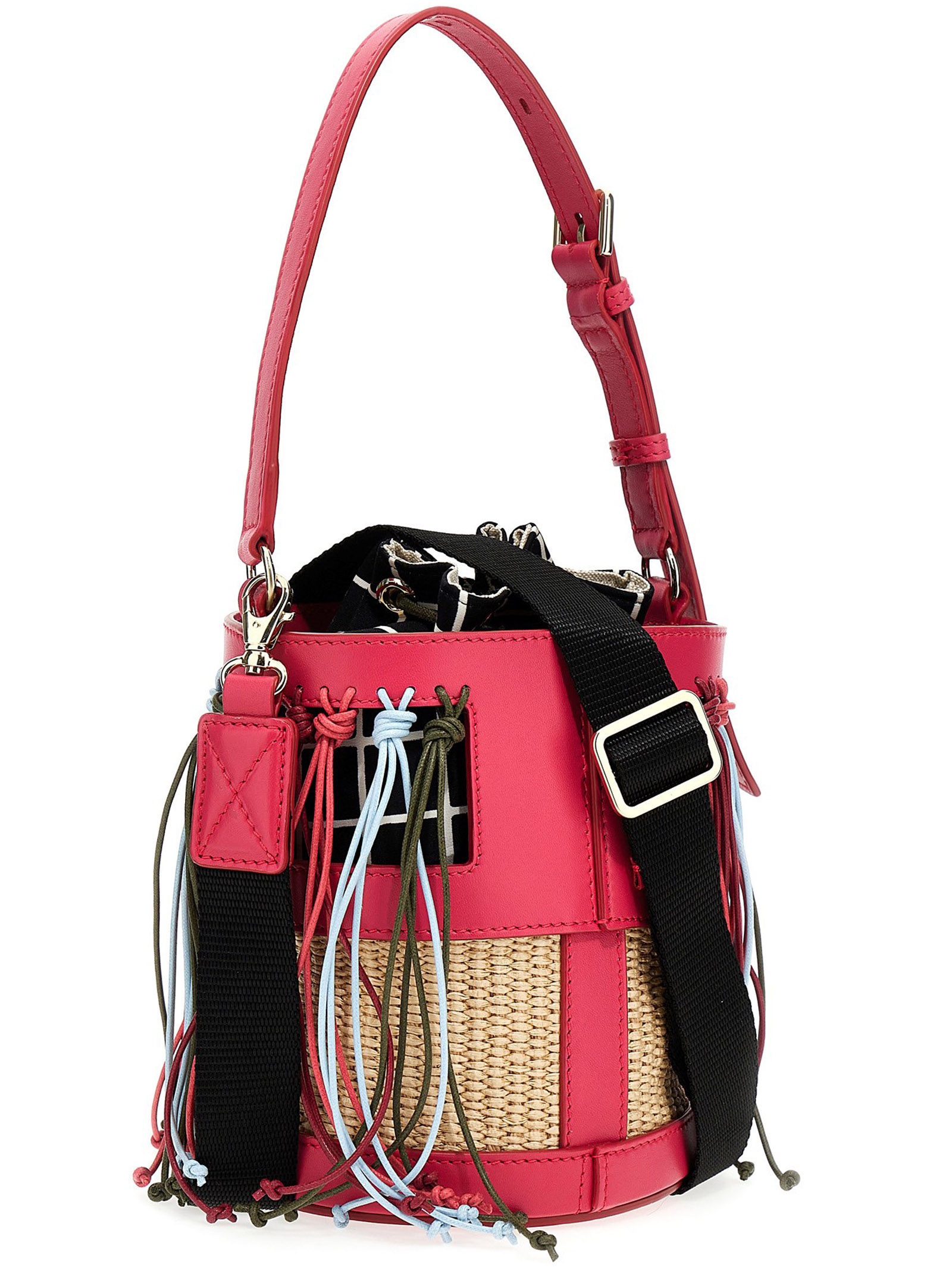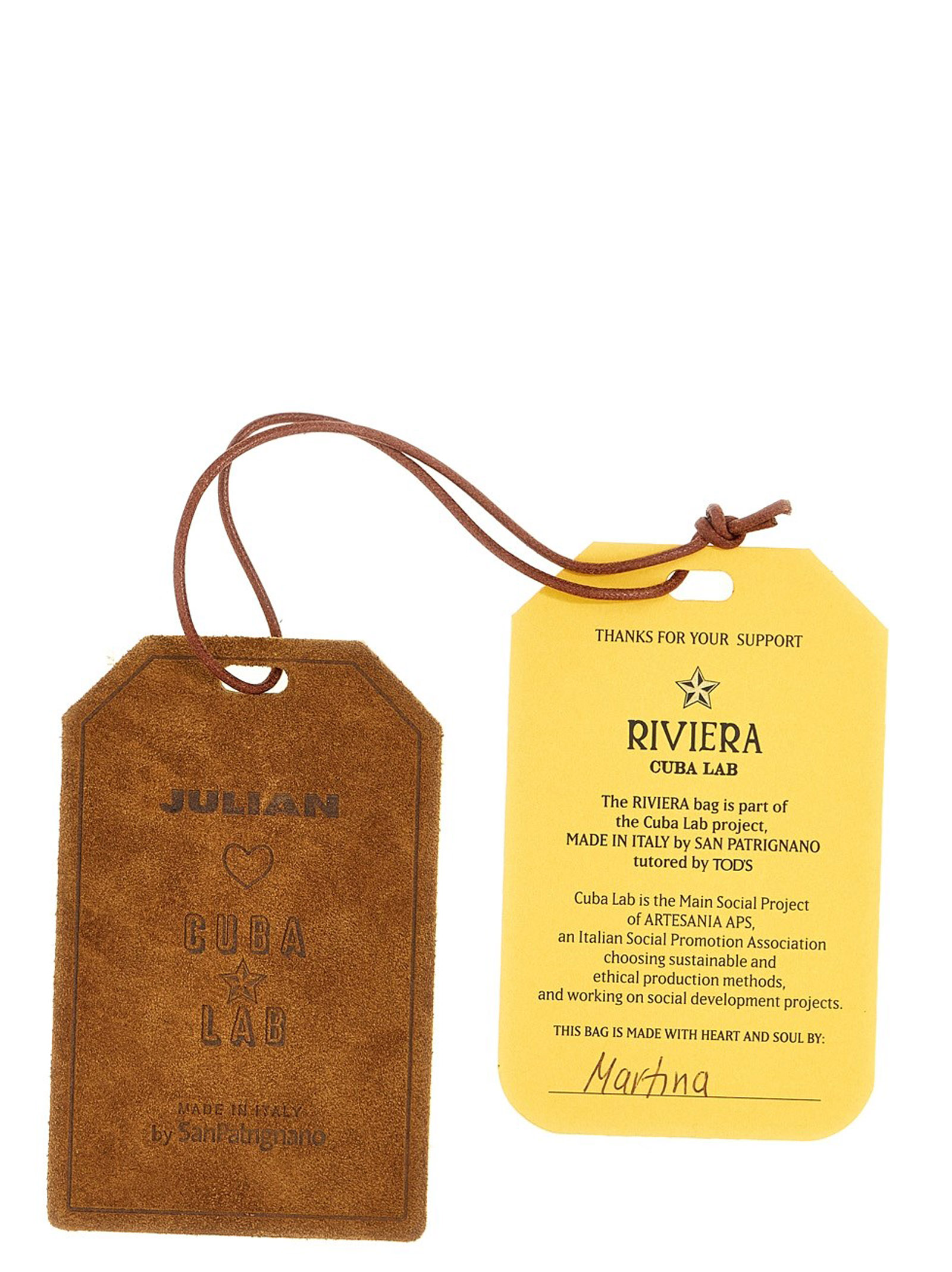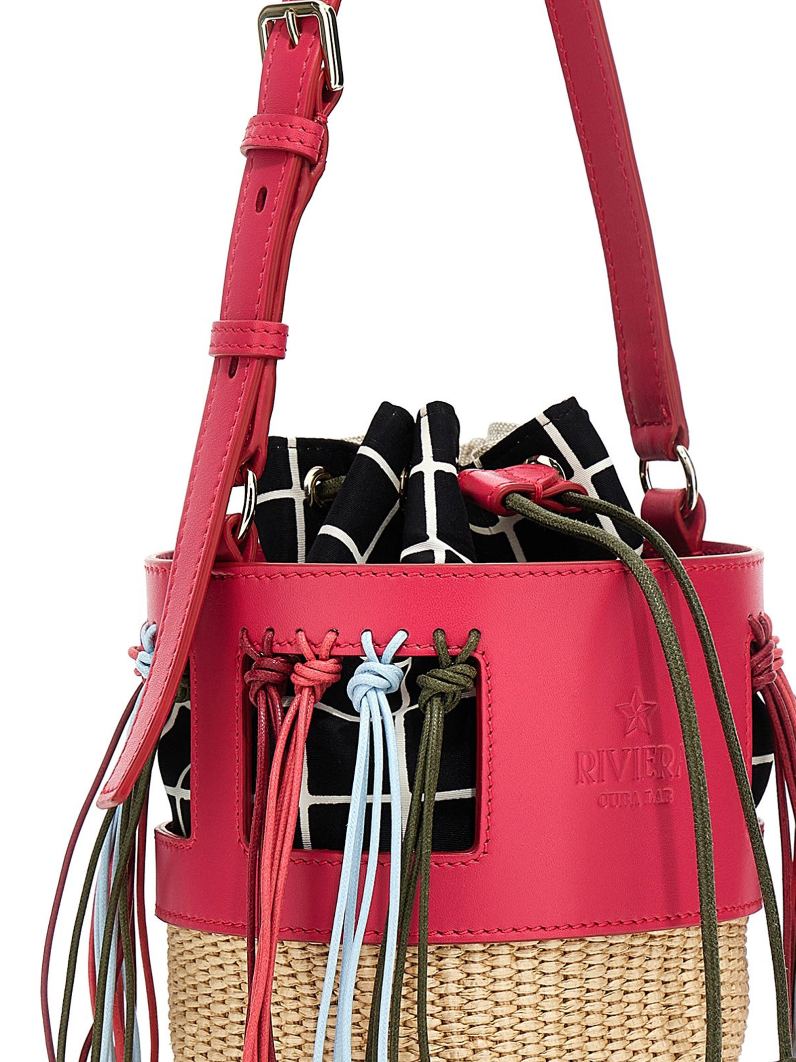 Cuba Lab x SanPa 'Riviera CubaLab' сумка з рафії та шкіри з регульованою ручкою, шнурком, підкладкою з переробленої тканини з тваринним принтом.