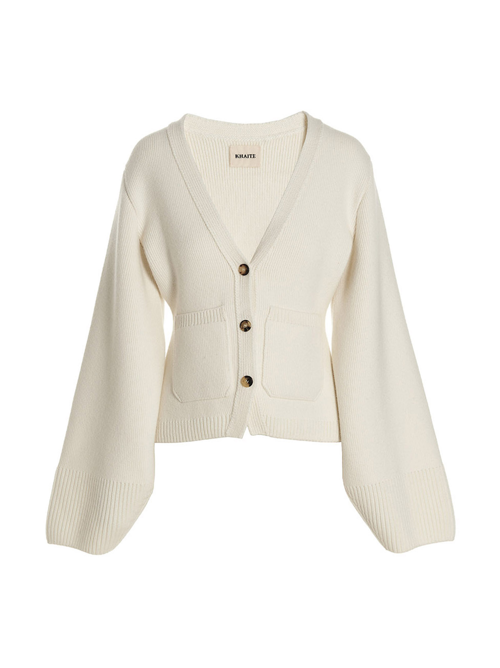 'Scarlet' кашеміровий кардиган з V-подібним вирізом, широкими рукавами, застібкою на гудзик та кишенями.