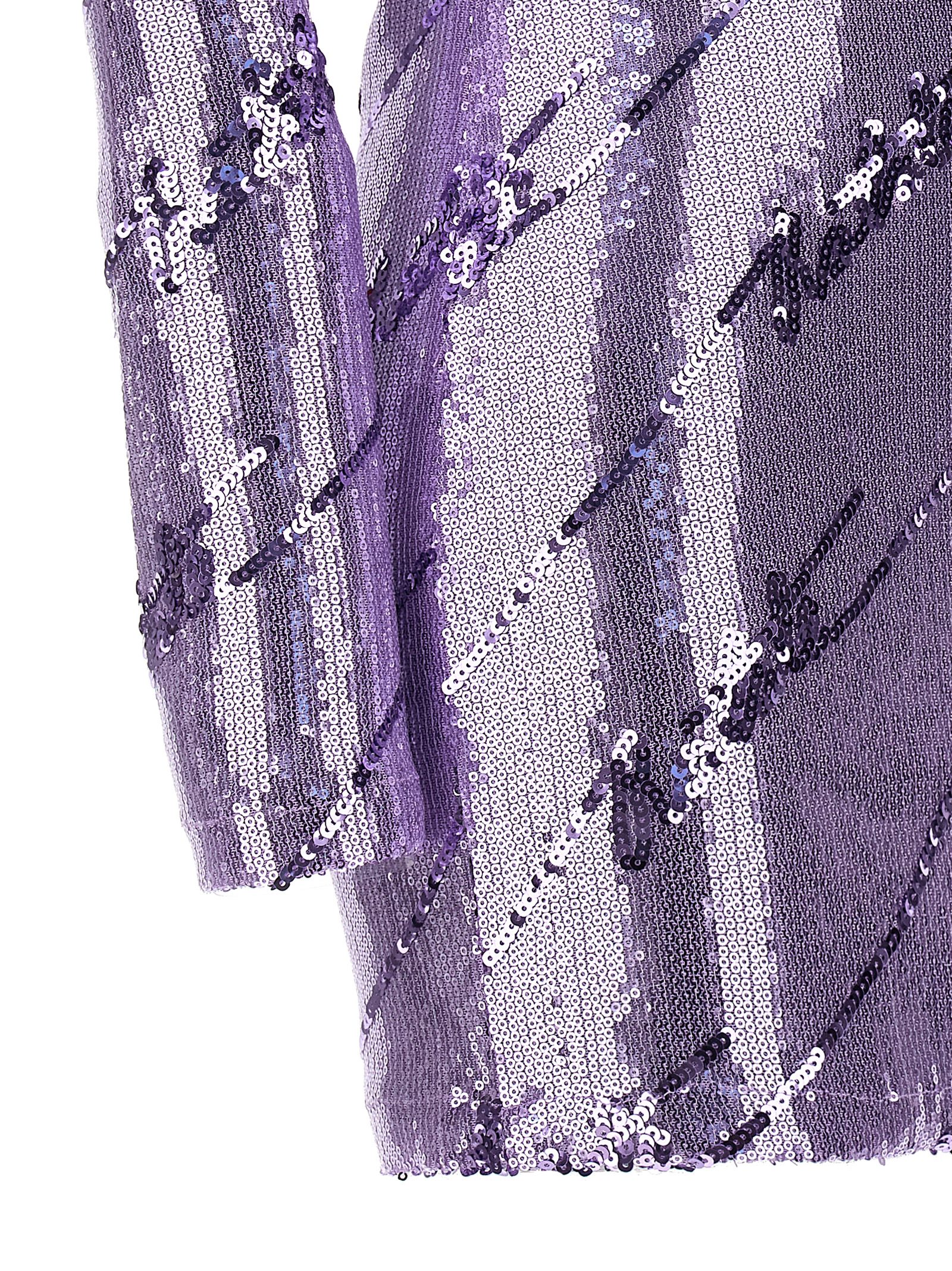 Mini dress in stretch fabric with all-over sequins, long sleeves, padded shoulders and a neckline on the back.
