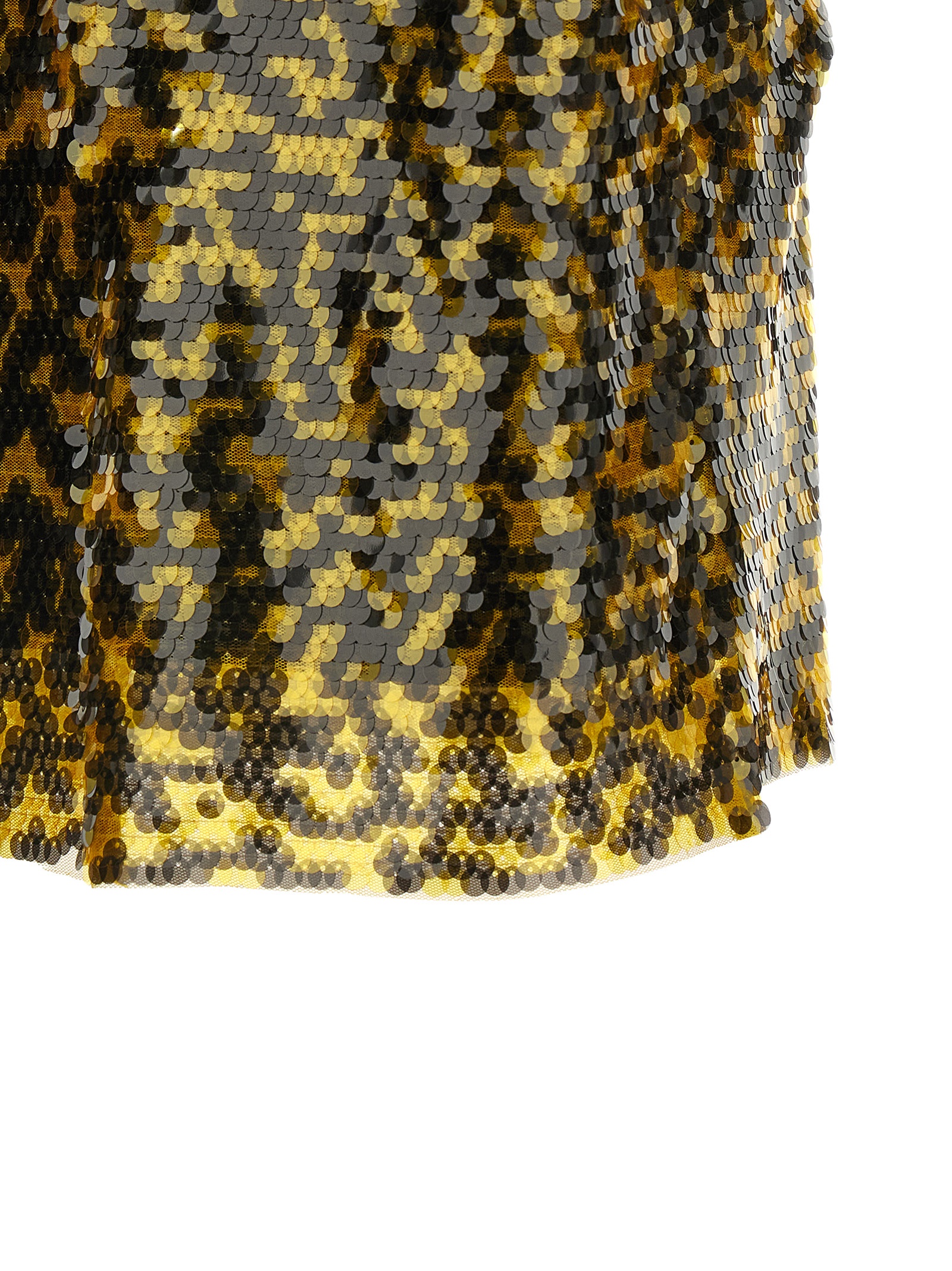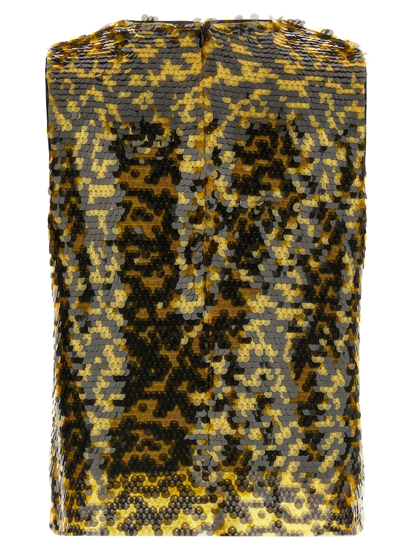 'Seraphina' тканинний топ, покритий двоколірними паєтками, трохи укорочений фасон, квадратний силует, круглий виріз, застібка на блискавці ззаду.