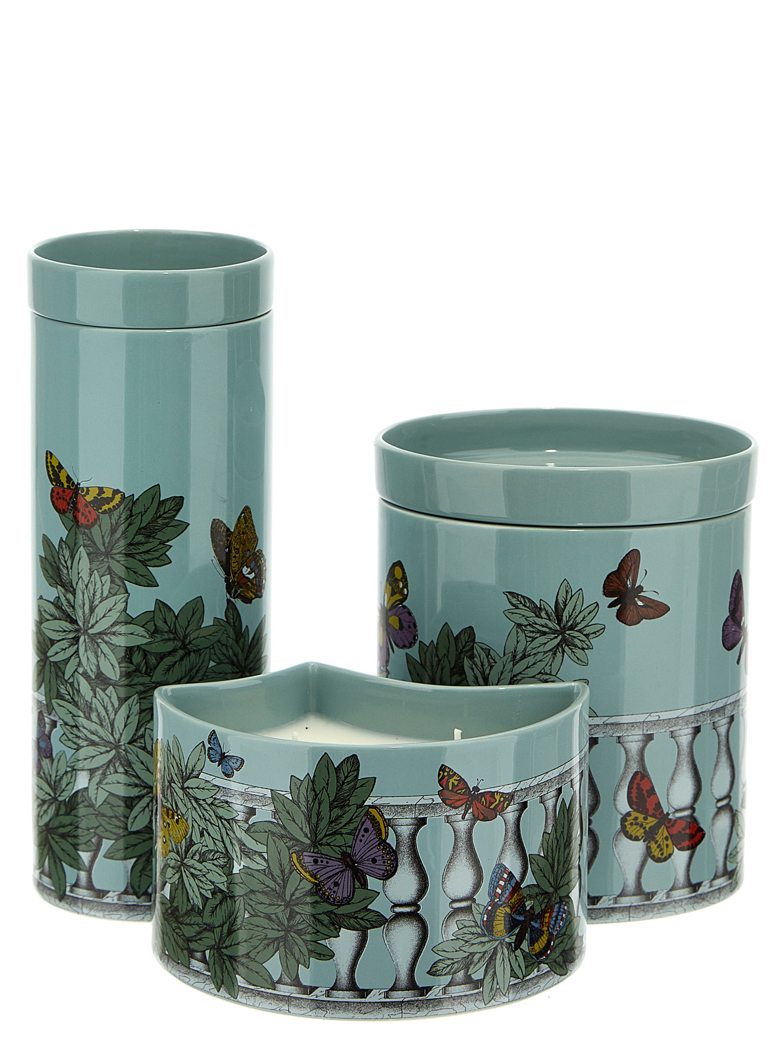 The Fornasetti Giardino Segreto fragrance emerges from a spontaneous and luxuriant nature, an undergrowth that takes on mystical and eccentric traits, thanks to the enveloping of myrrh, sandalwood and ebony. This triptych of scented candles is a dream scenario in which countless stories float freely. Any slightest discrepancies between similar creations are the result of craftsmanship and attest to the uniqueness of each product. NON-RETURNABLE PRODUCT