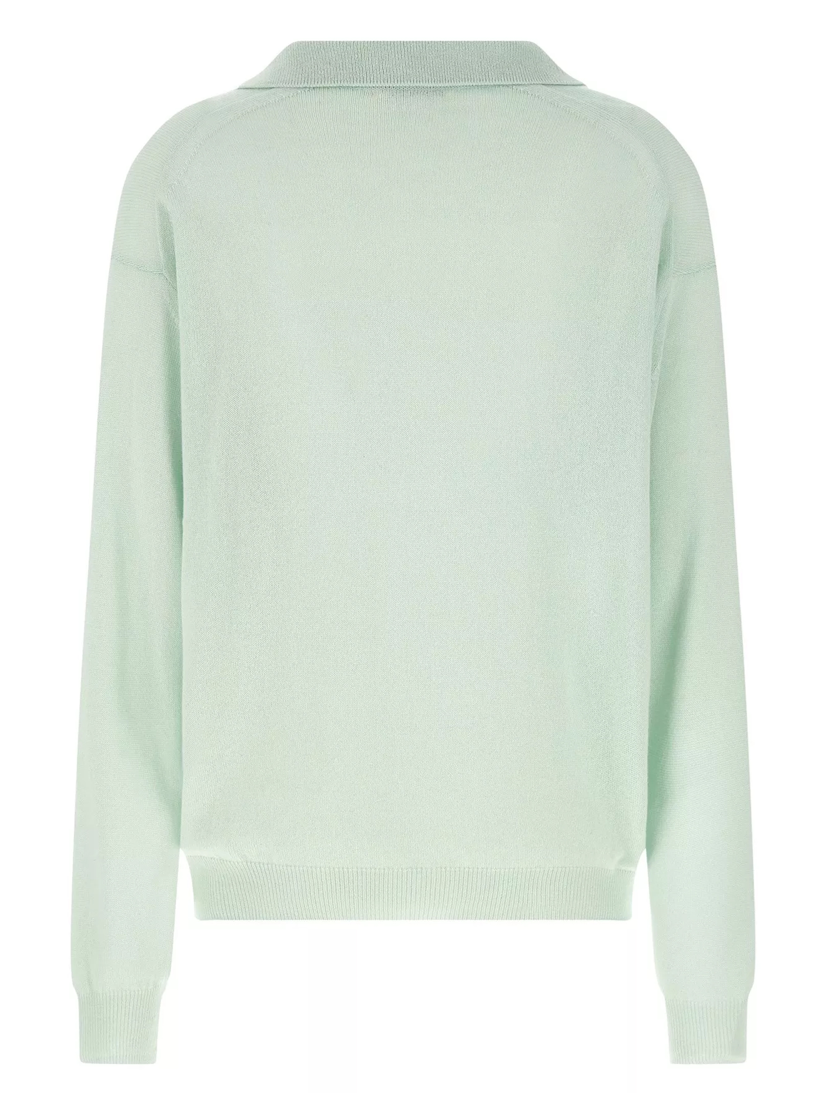 Кашеміровий та шовковий светр з V-подібним вирізом, довгі рукави з манжетами та спущеними плечима.