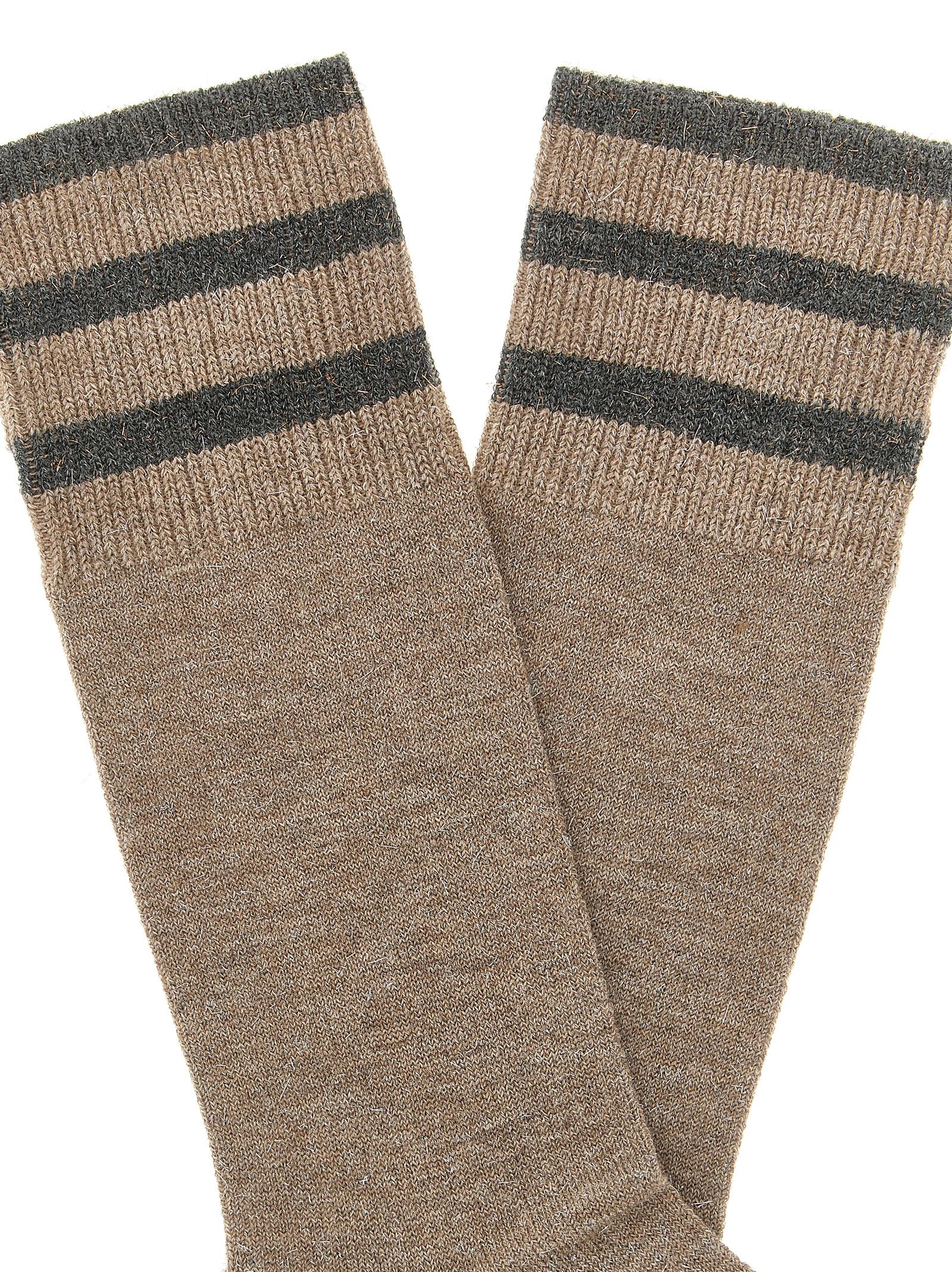 Шкарпетки з кашеміру з блискучими нитками та контрастними деталями.