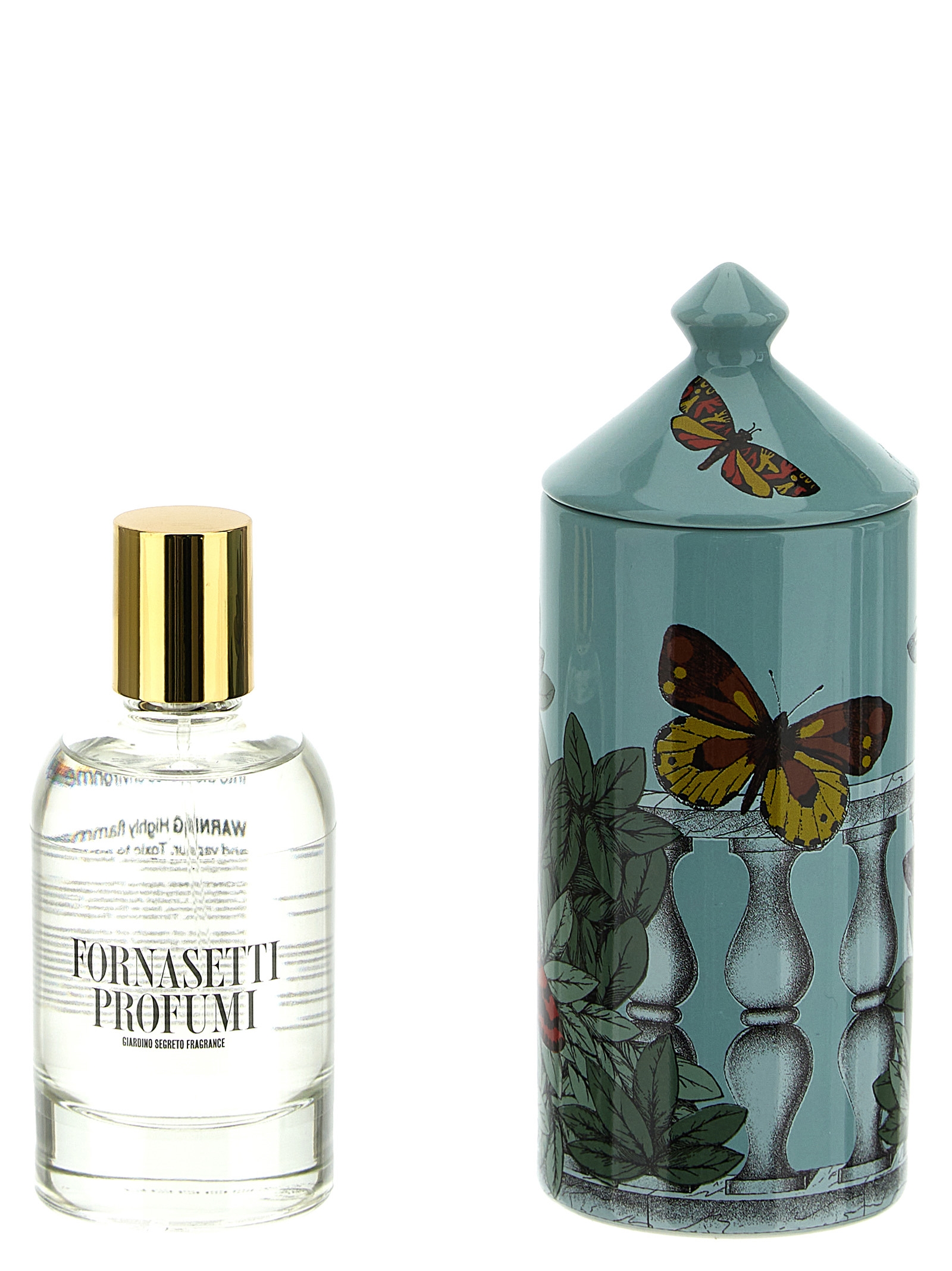 Декорація Fornasetti Farfalle та Balustrade - це мрійливий сценарій, в якому безліч історій вільно плаває. Аромат Fornasetti Giardino Segreto виникає з спонтанної та розкішної природи, підлісся, яке набуває містичних та ексцентричних рис завдяки обволікаючим нотам мирри, сандалу та чорного дерева. У спреї для кімнати Fornasetti дизайн та аромат зустрічаються, у сенсорному досвіді, який, здається, призупиняє час. Будь-які незначні відмінності між подібними виробами є результатом ручної роботи та свідчать про унікальність кожного продукту.