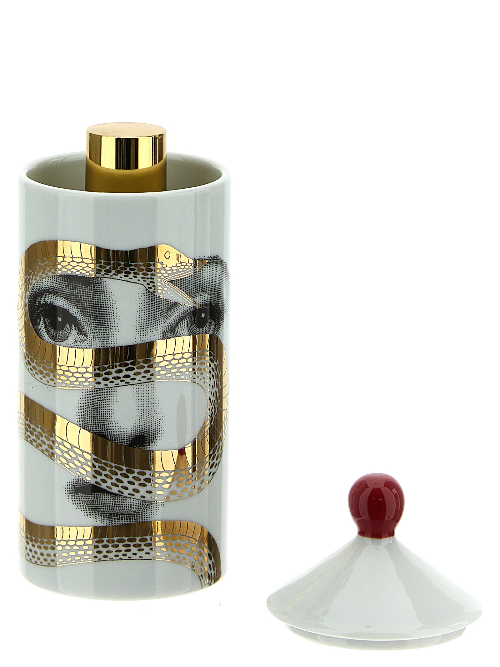 Муза Форнасетті та змія інтерпретують тему первородного гріха. Аромат Fornasetti Frutto Proibito є спокусливим: він активує відчуття завдяки верхнім нотам, середземноморським і цитрусовим, які обіймають жасмин у розкішному відданні нотам туберози та солодким обіймам рожевого дерева. У спреї для кімнати Fornasetti дизайн і аромат зустрічаються в сенсорному досвіді, який, здається, призупиняє час. Будь-які найменші розбіжності між подібними виробами є результатом ремесла і свідчать про унікальність кожного продукту.