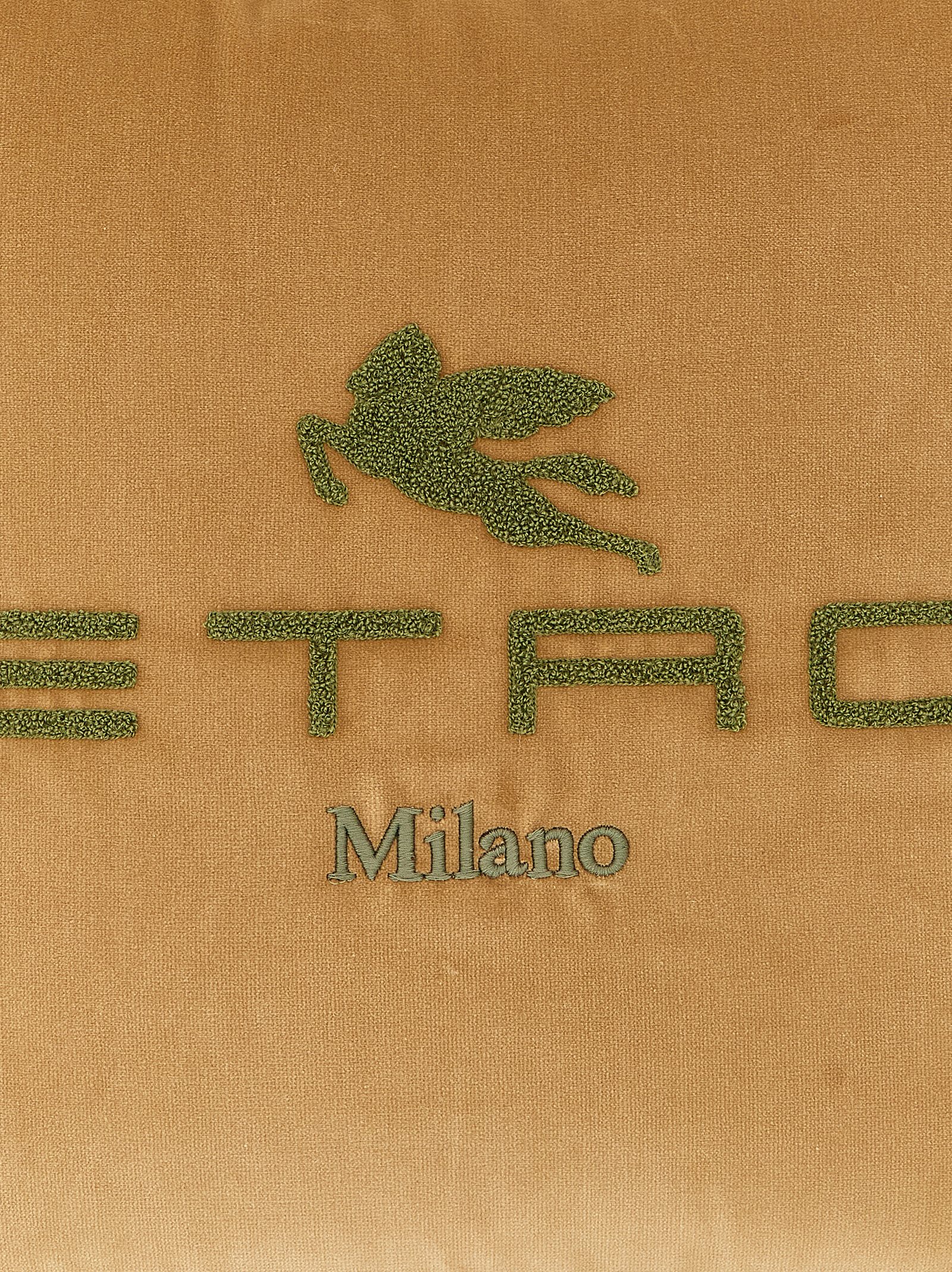 Подушка з перетвореної та прохолодної бавовняної вовни, передня вишивка логотипу з махрової тканини, бічне застібання на блискавці.