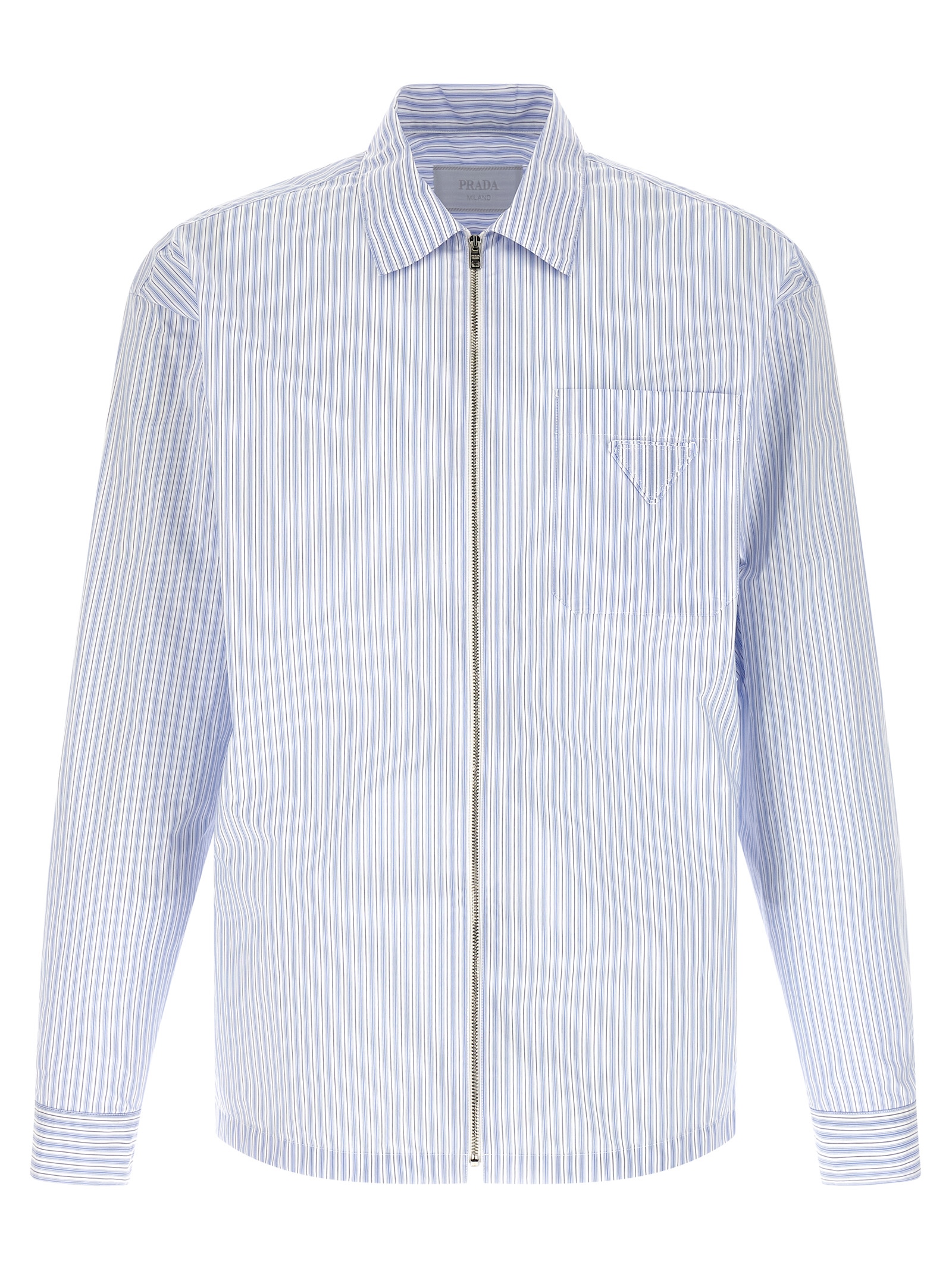 Сорочка Re-Nylon в технічній смужці, кишеня з трикутним логотипом з тканини в тон, передня застібка на блискавці, довгі рукави з манжетами.