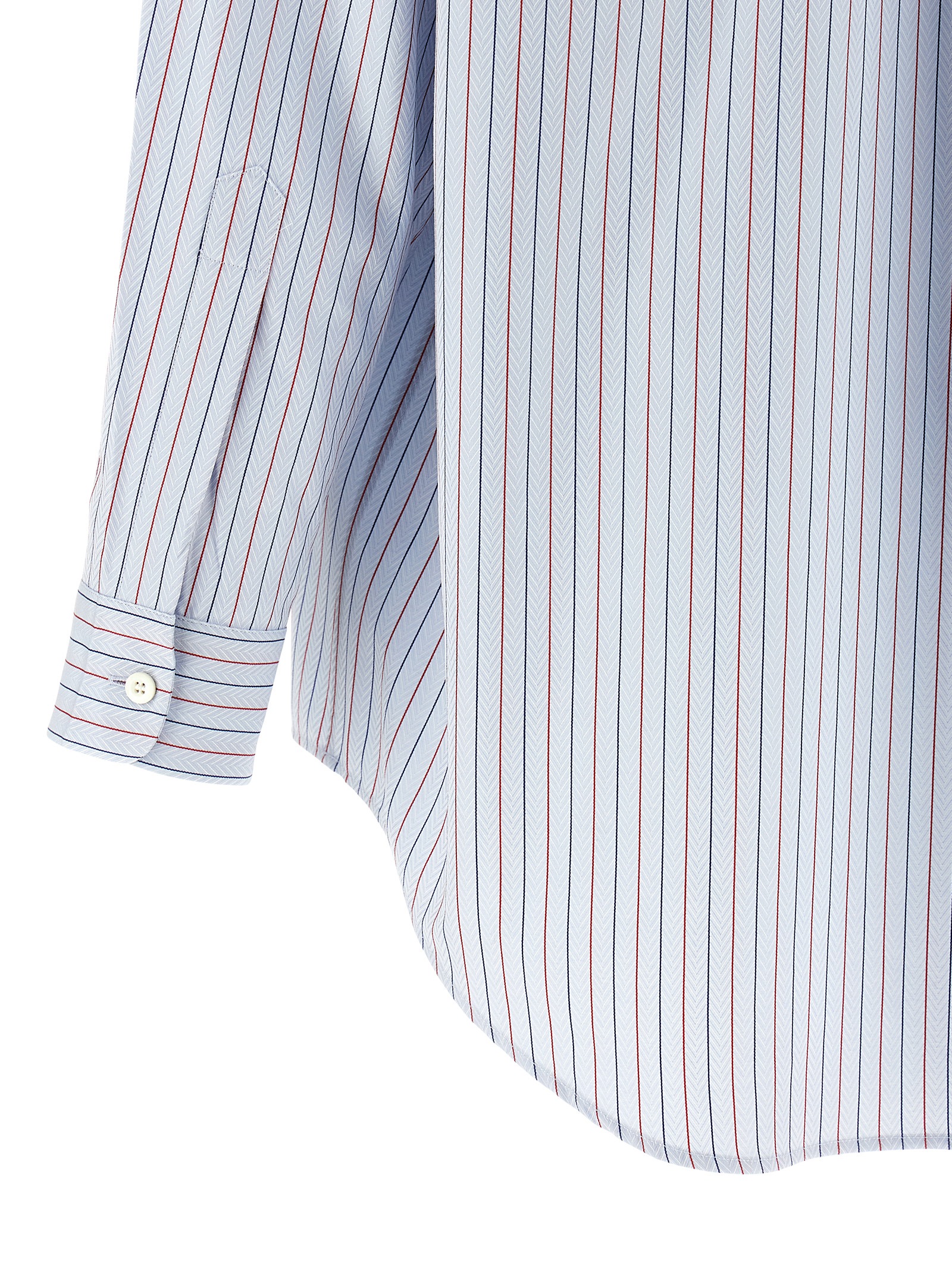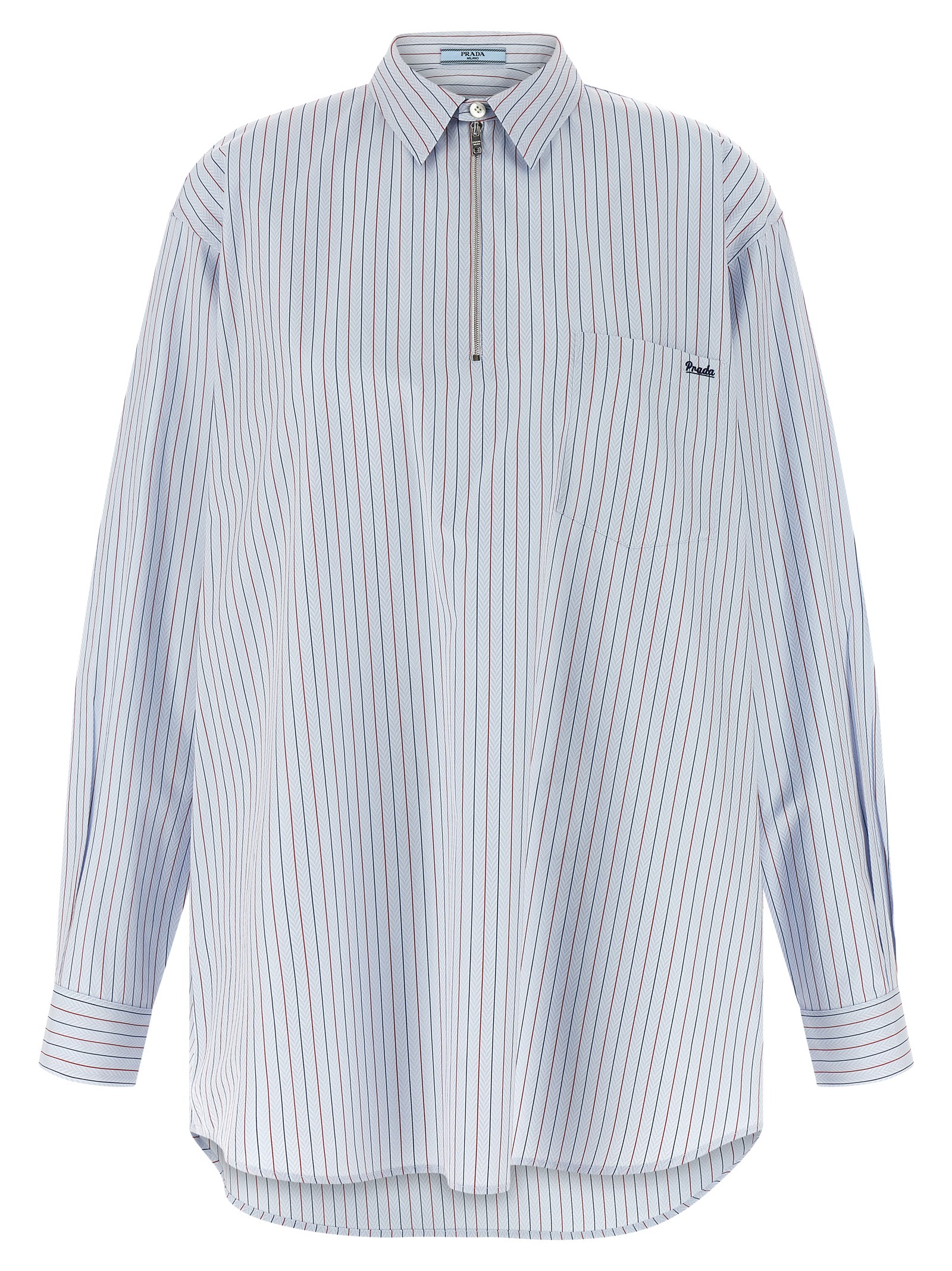 Herringbone cotton shirt with striped pattern, pocket with embroidered logo, pointed collar, half zip, long sleeves with cuffs and dropped shoulders, rounded hem.
