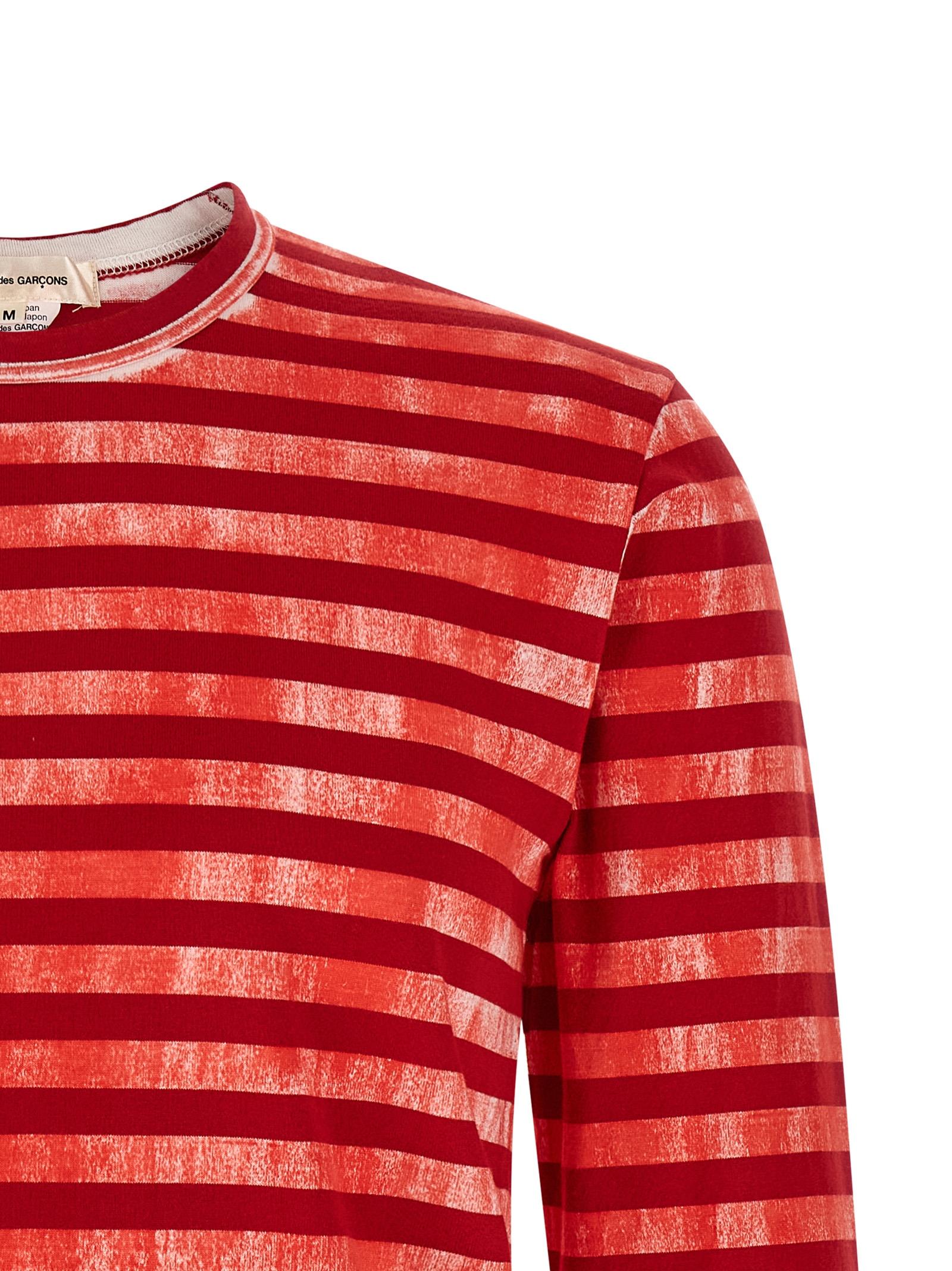 Футболка в смужку з бавовняного джерсі з накладеним принтом акварельного ефекту, круглий виріз, довгі рукави.