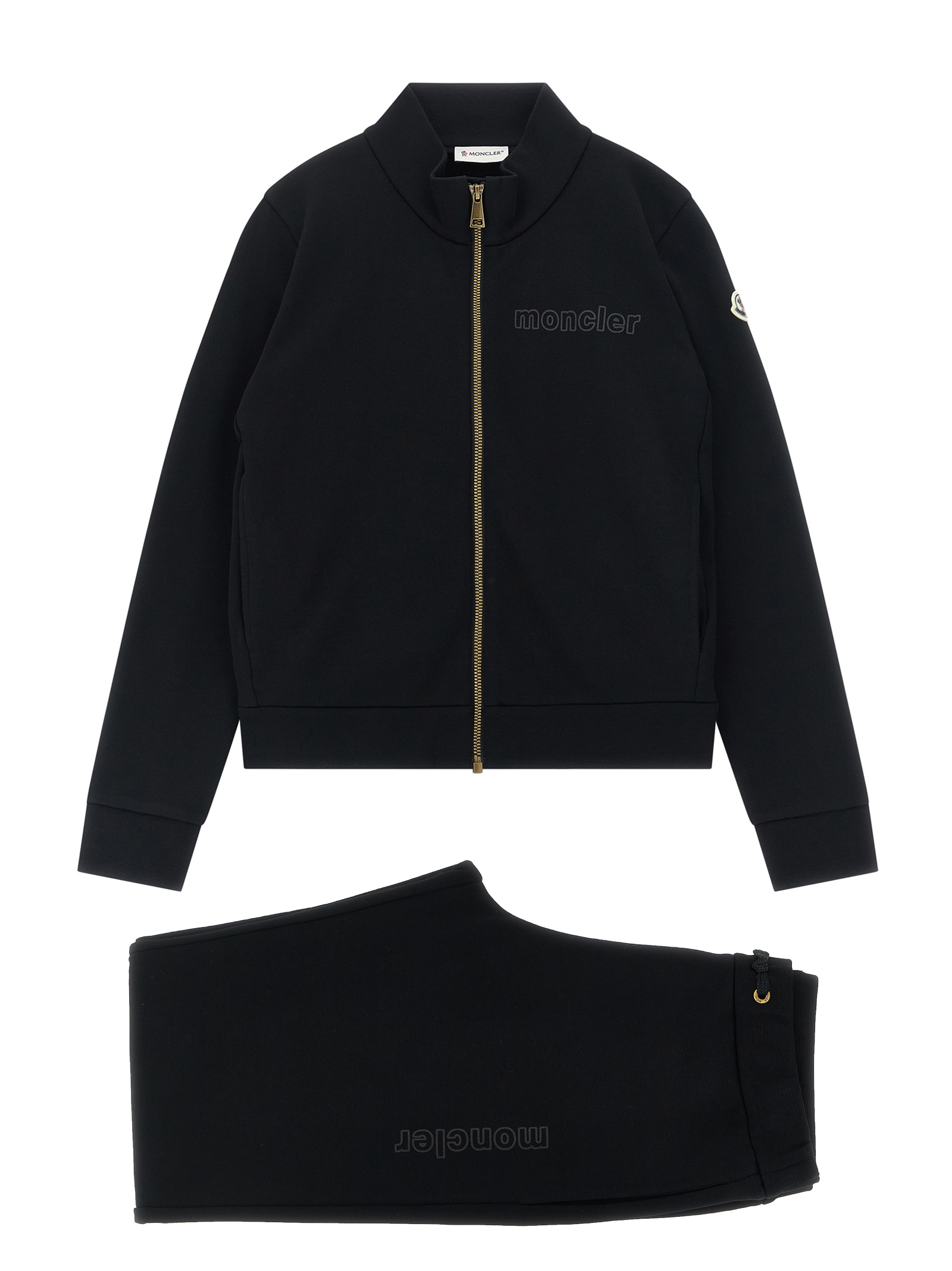 ДІТИ Бавовняний комплект з флісу з вишивкою логотипу спереду, що складається з світшота з високим коміром, застібкою на блискавці спереду, довгими рукавами з манжетами та нашивкою логотипу з фетру та джоггерів з еластичним поясом та ілюзійною шнурівкою, кишенями, прямими штанинами.