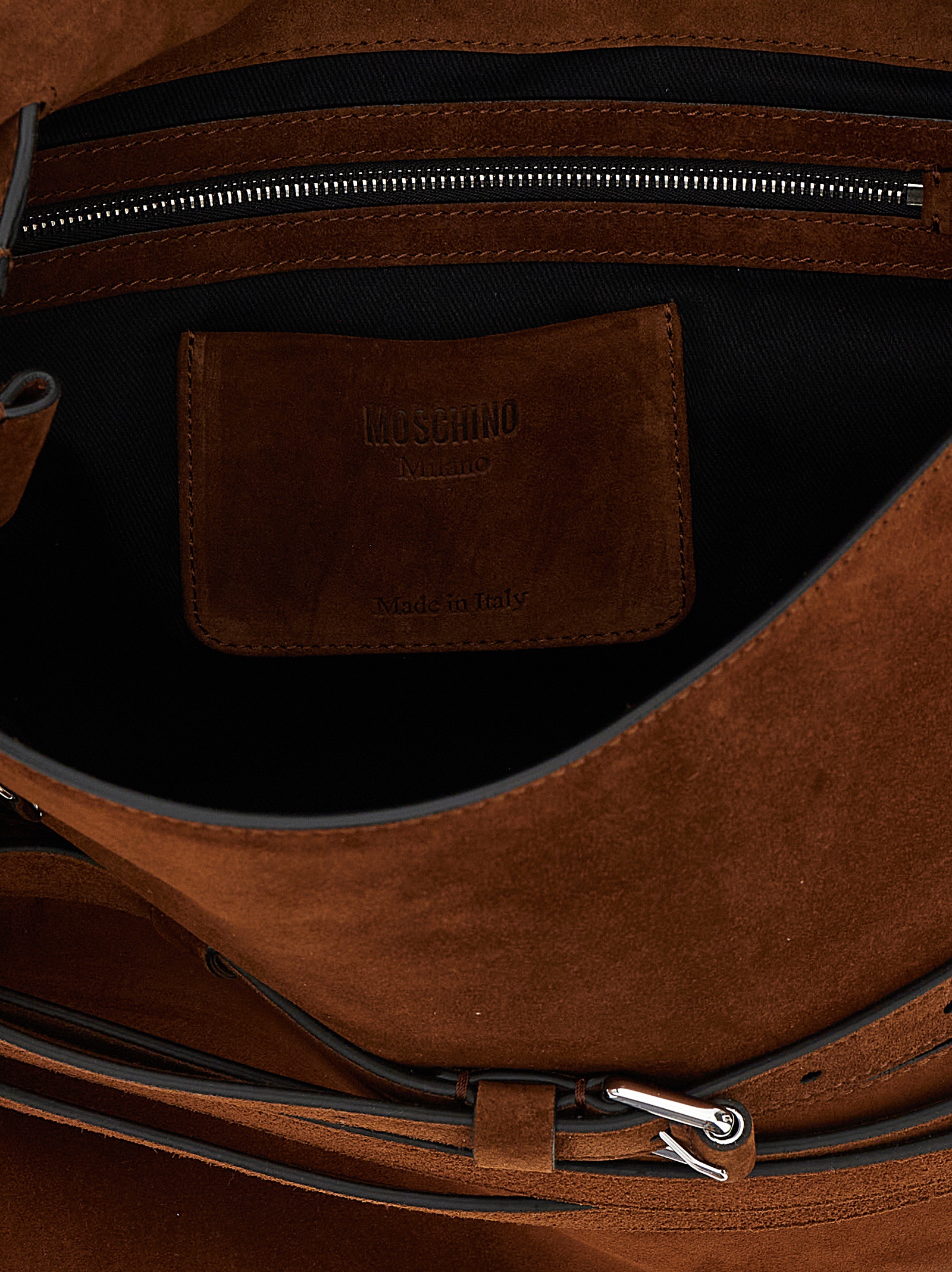 Tie Me замшевий сумка через плече з передньою деталлю пояса, переднє тиснене логотип, фіксована ручка, магнітна застібка, регульований і знімний шкіряний ремінь через плече.