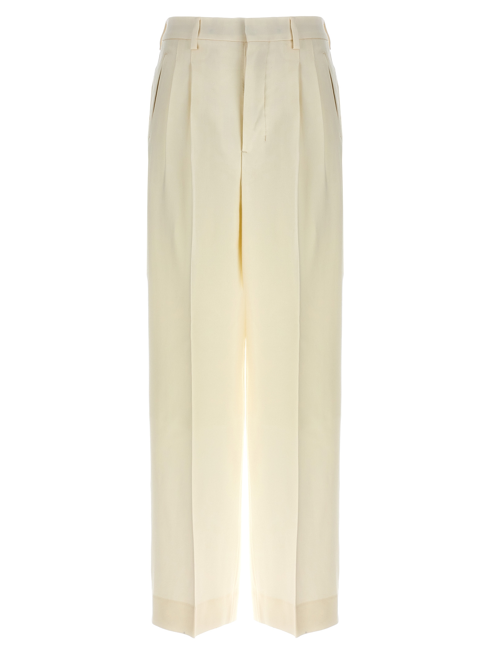 Штани з вовни зі складками, застібка на гудзик та гачок, кишені.