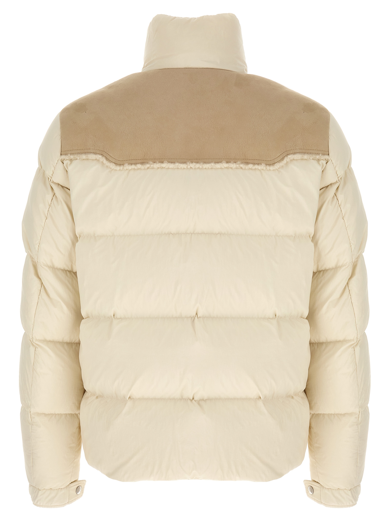'Verine' пухова куртка з мікро м'якого стьобаного нейлону з наповнювачем з гусячого пуху, замшеве горлове плечове оздоблення з довговолосою овчиною, стійкий комір, застібка‑блискавка і передні кнопки, кишені, довгі рукави з регульованими еластичними манжетами і повстяною нашивкою з логотипом, шнурок по низу.