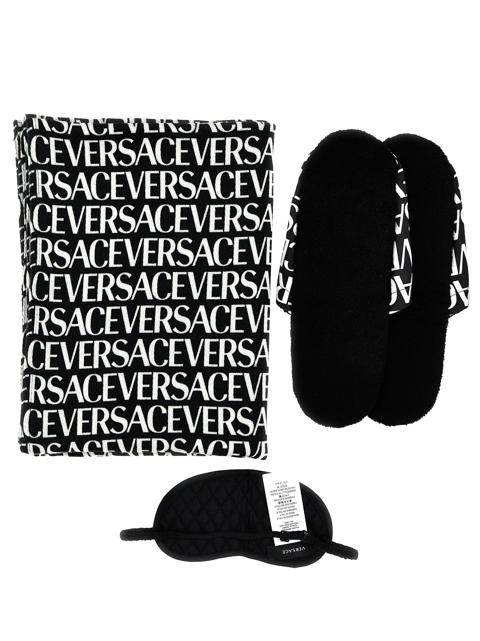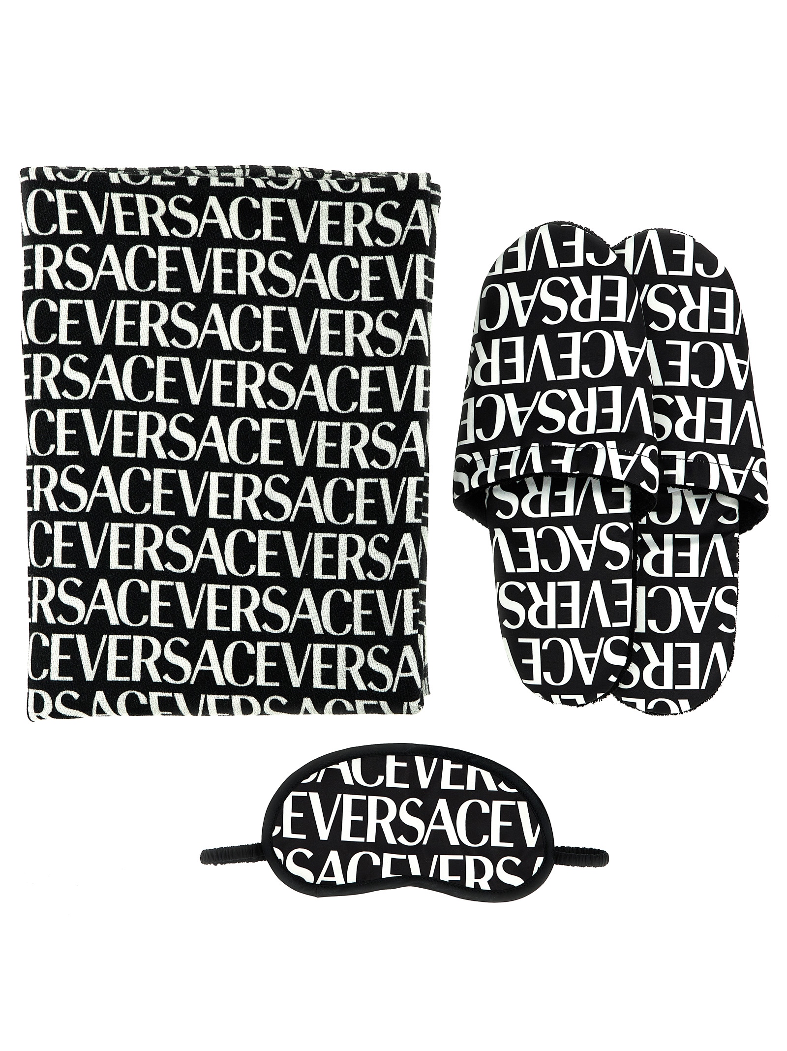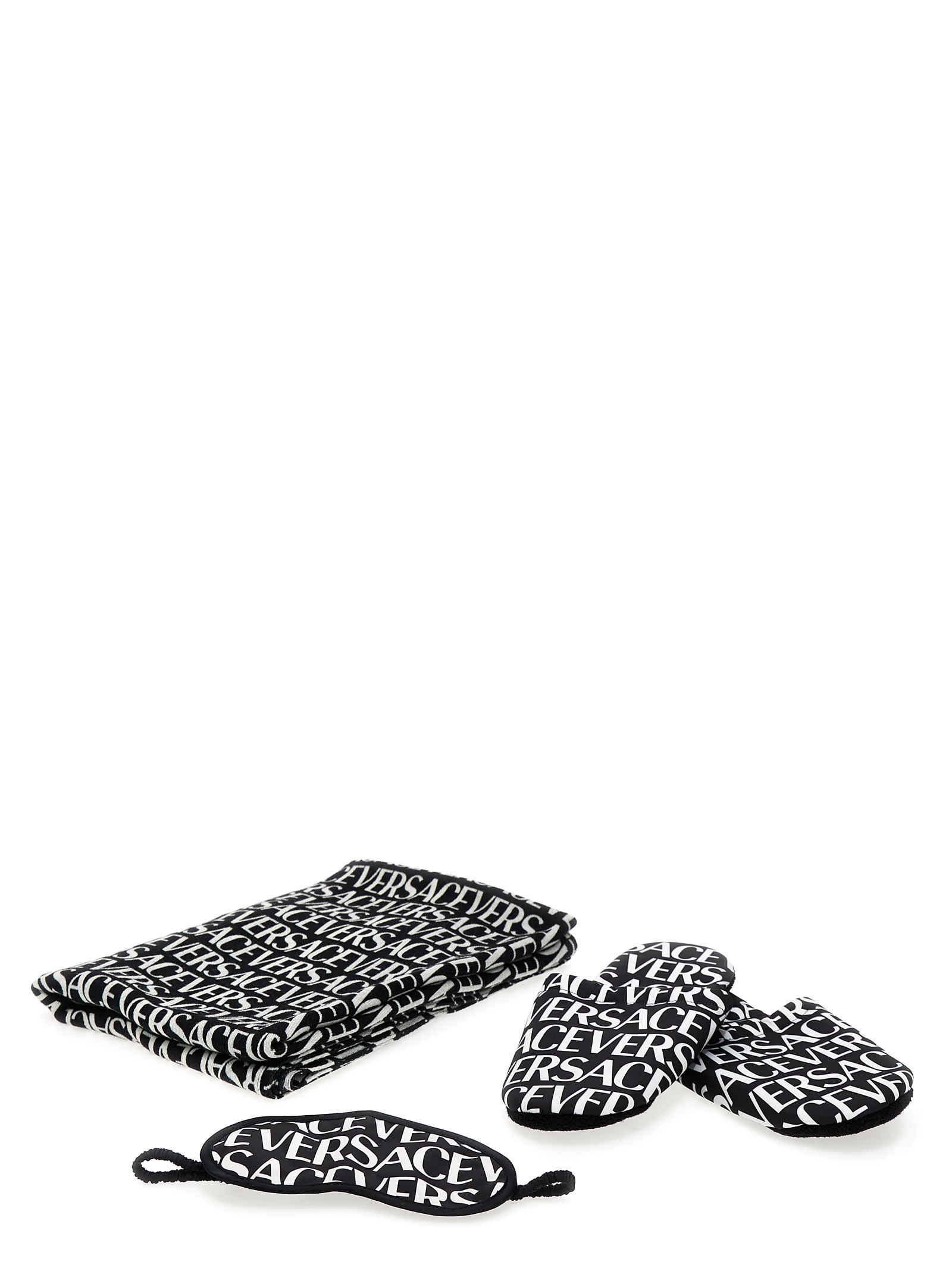 Дорожній набір Versace Allover з капцями, маскою для очей та пледом.
