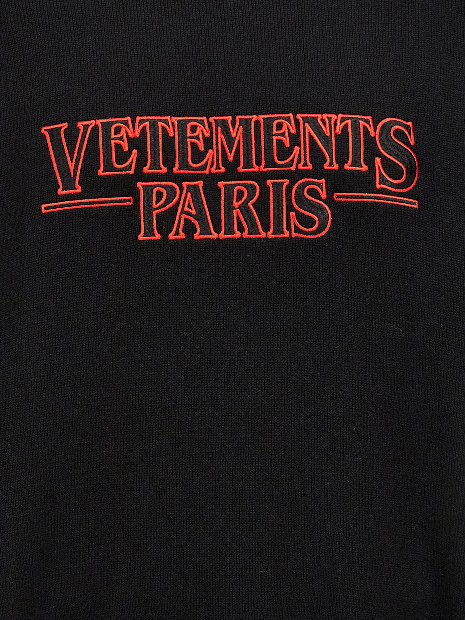 Светр Vetements Paris з коміром-стійкою та вишивкою спереду.