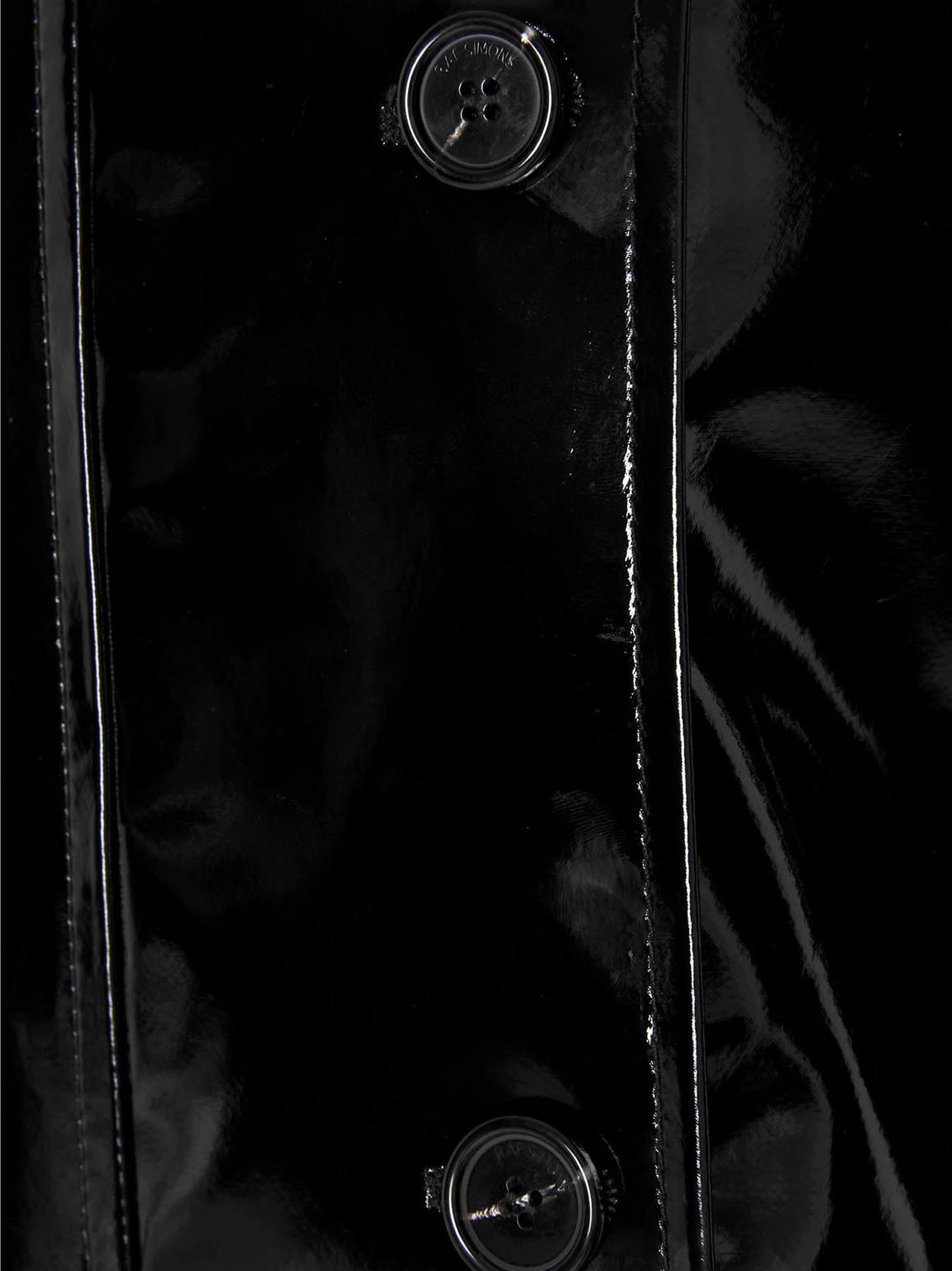 Вінілове тренч-пальто з застібкою на гудзиках, кишенями, довгими рукавами та коміром.