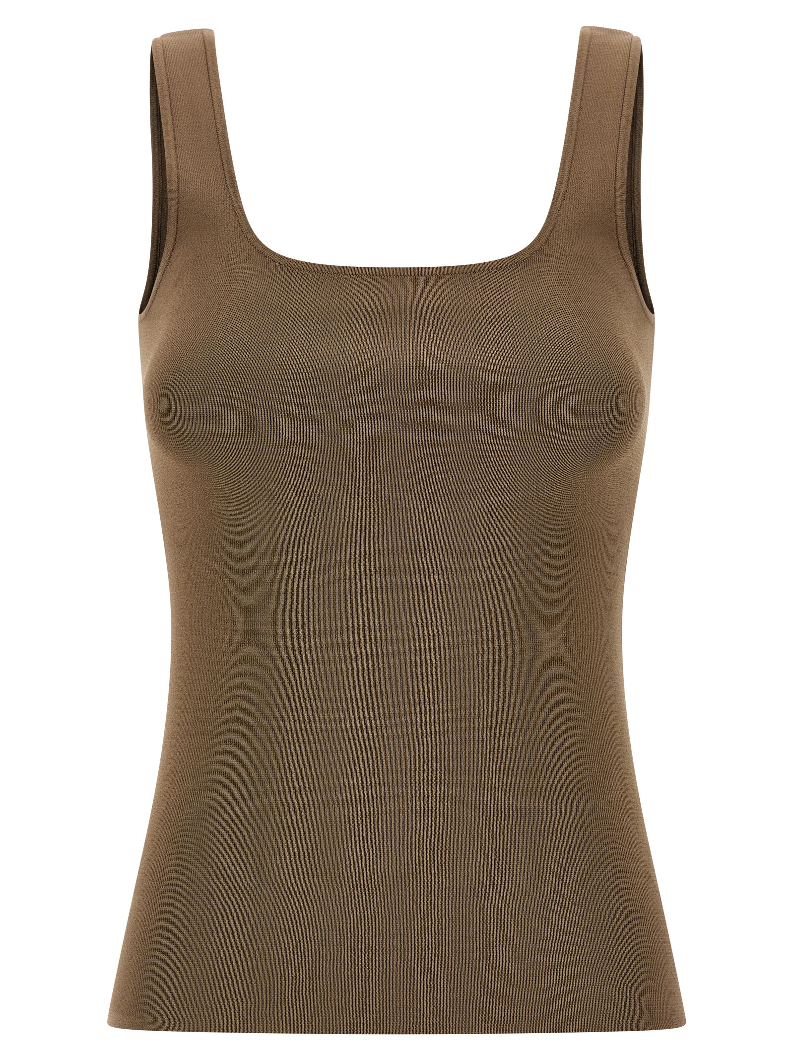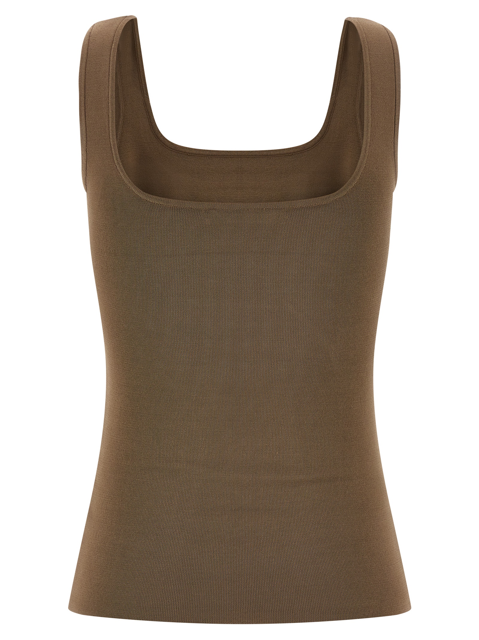 Фітований в'язаний топ з віскози, квадратний виріз спереду та ззаду, широкі бретелі.