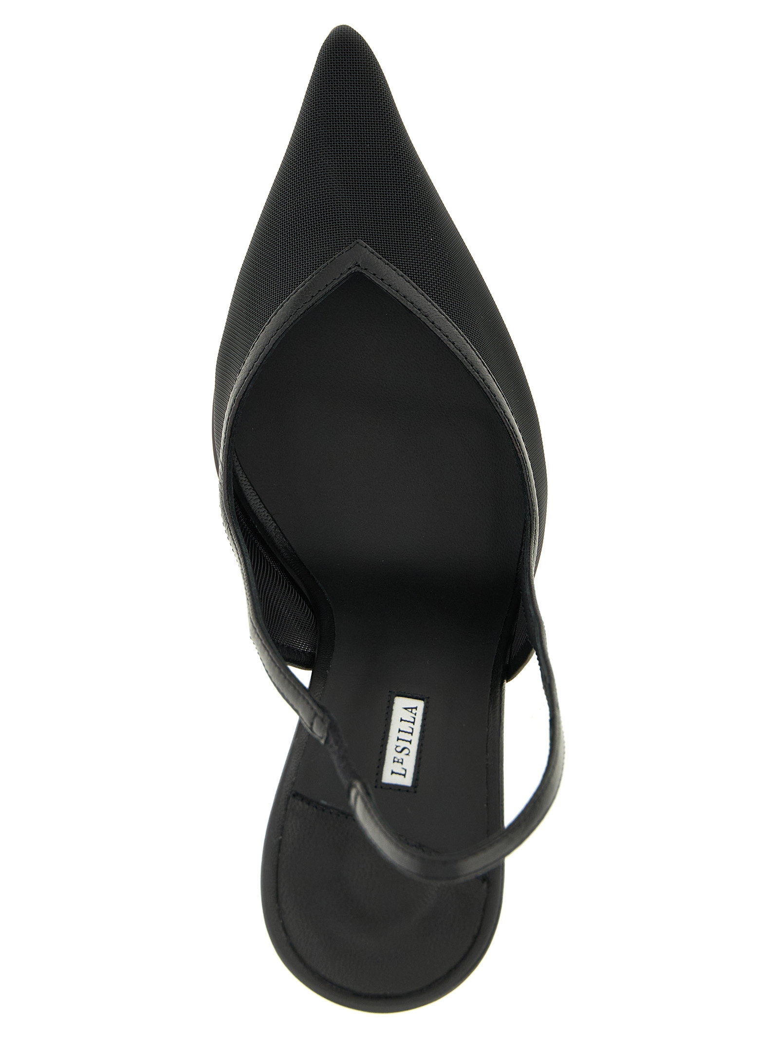 'Vivienne' сандалі з сітки, шкіряними вставками, загостреною моделлю з каблуками-стилетами, заднім відкриттям з ремінцем та бічною еластичною стрічкою, шкіряною устілкою та шкіряною підошвою з центральним протиковзким елементом.