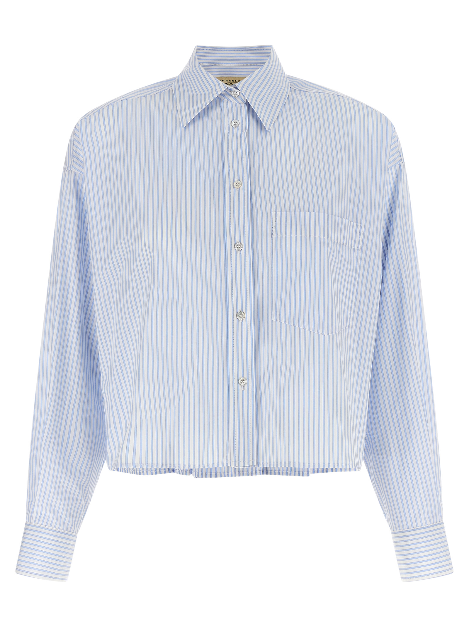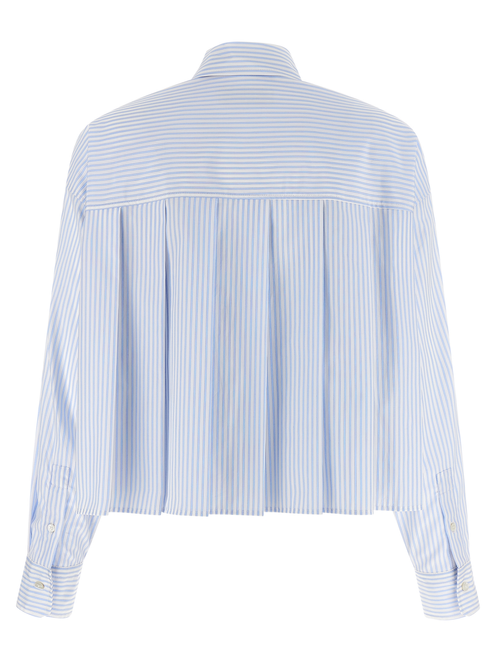 'WkdEden' striped cotton poplin shirt, crop model, back pleated pattern, front button closure, breast pocket, long cuffed sleeves and dropped shoulder, side slits. SUSTAINABLE: This product is made of organic cotton.