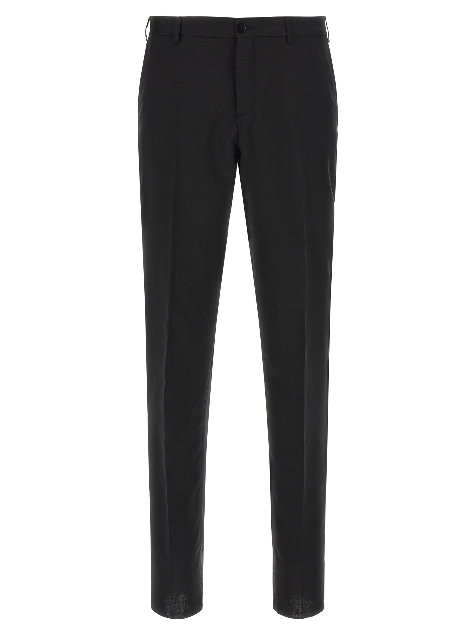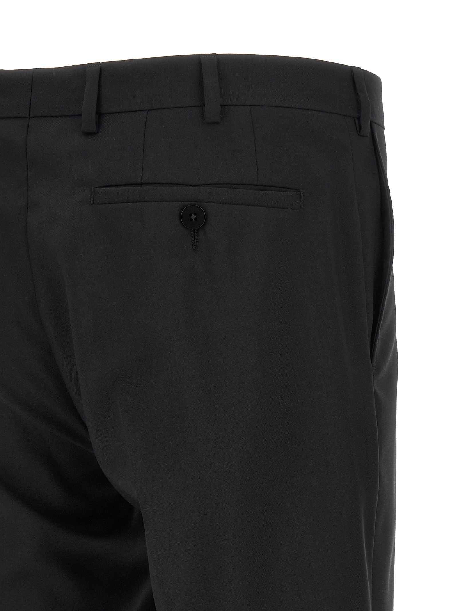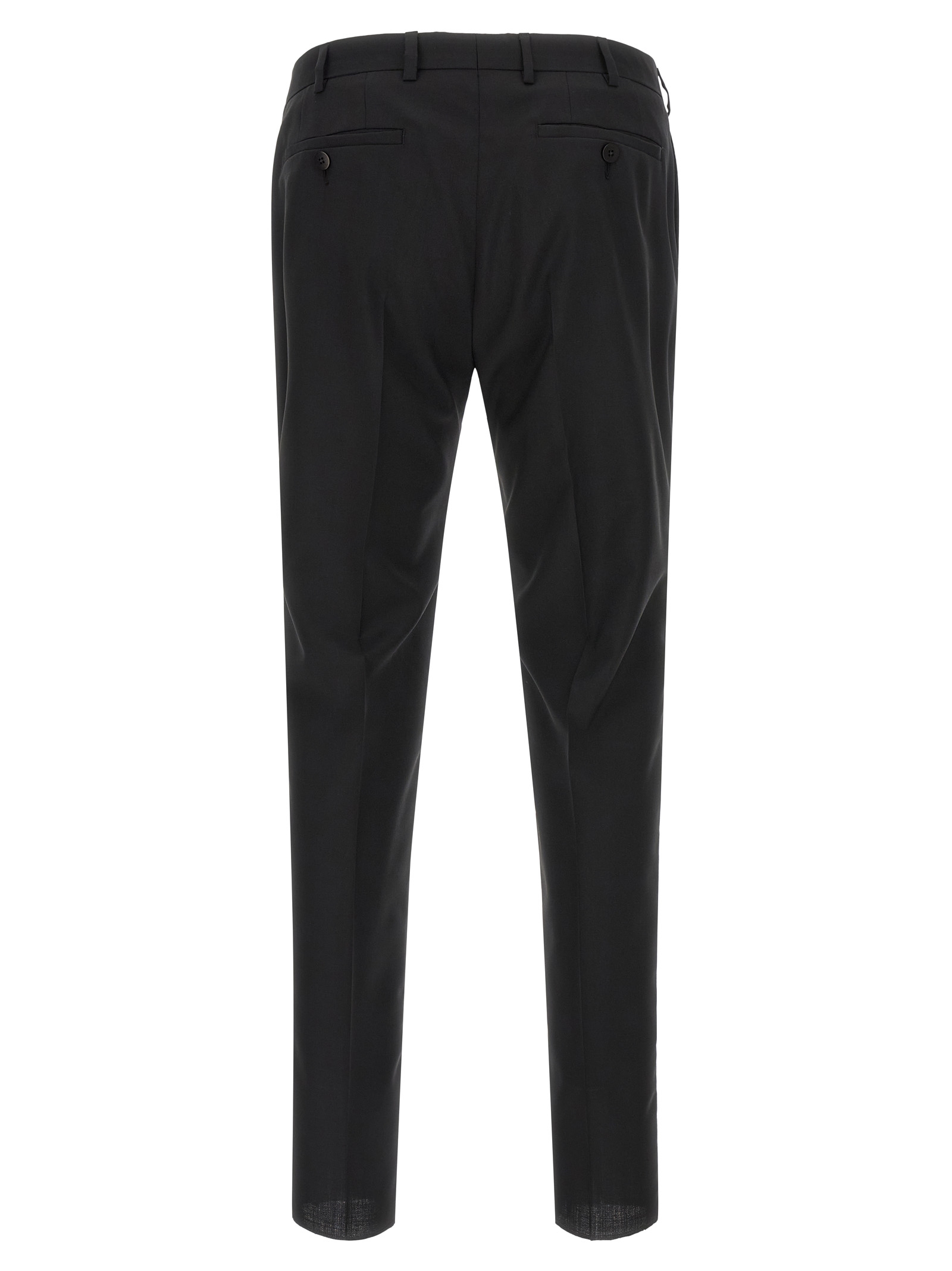 Сукня - Церемонійна лінія з cool wool з перламутровими гудзиками, що складається з піджака з однобортною застібкою спереду, дзеркальні лацкани, нагрудна кишеня, кишені з клапанами, підкладка з віскози, дві внутрішні кишені, структуровані плечові ремені, манжети з отворами для гудзиків, розрізи ззаду та штани з розтягнутими складками, передні кишені 'американки', задні welt кишені, передня застібка на блискавці та гудзиках, підкладка з віскози.
