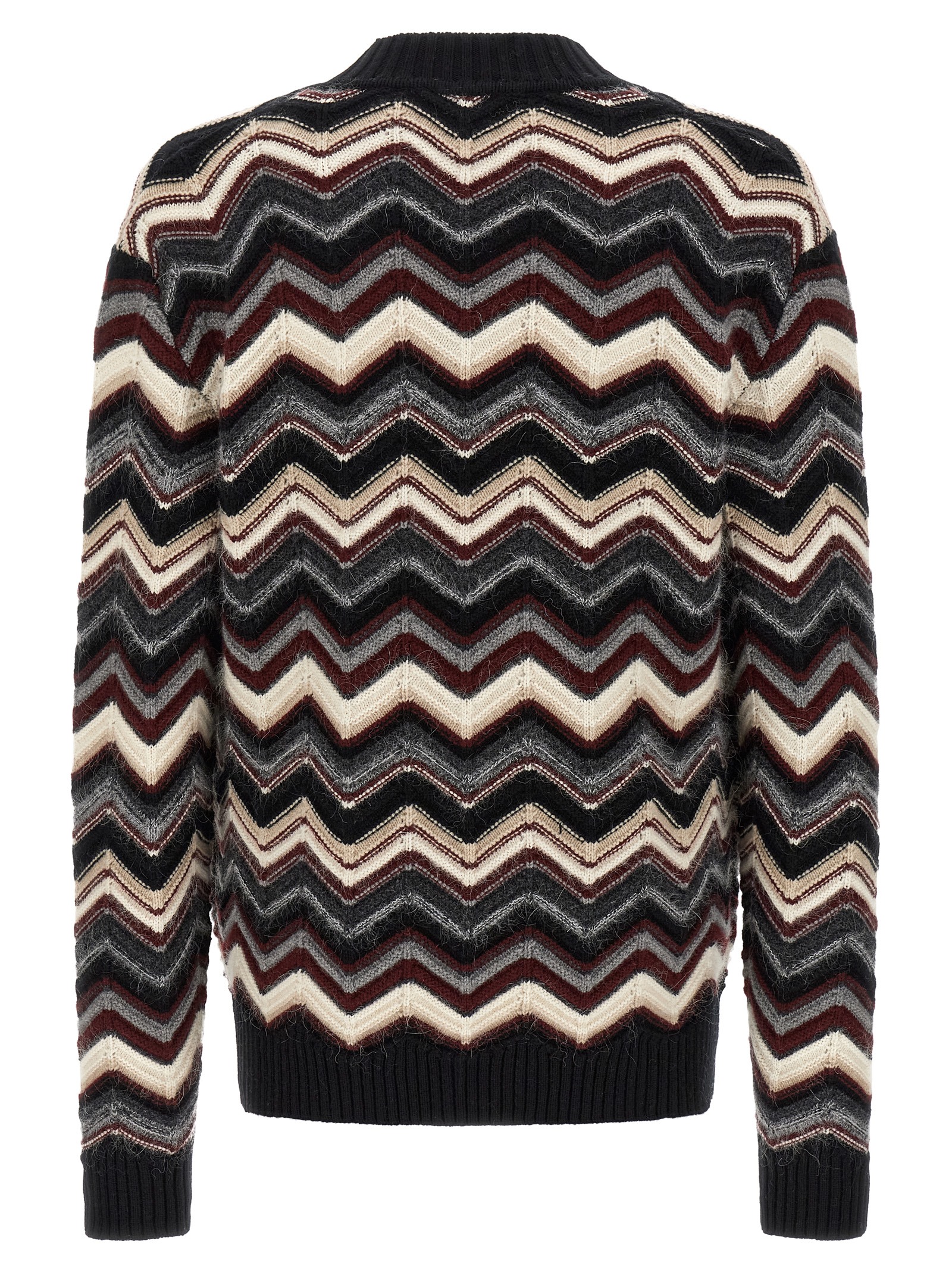 Кардиган із суміші вовни та альпаки з зигзагоподібним візерунком і однотонною ребристою окантовкою, V-подібний виріз, передня застібка на ґудзики, кишені, довгі рукави з манжетами.