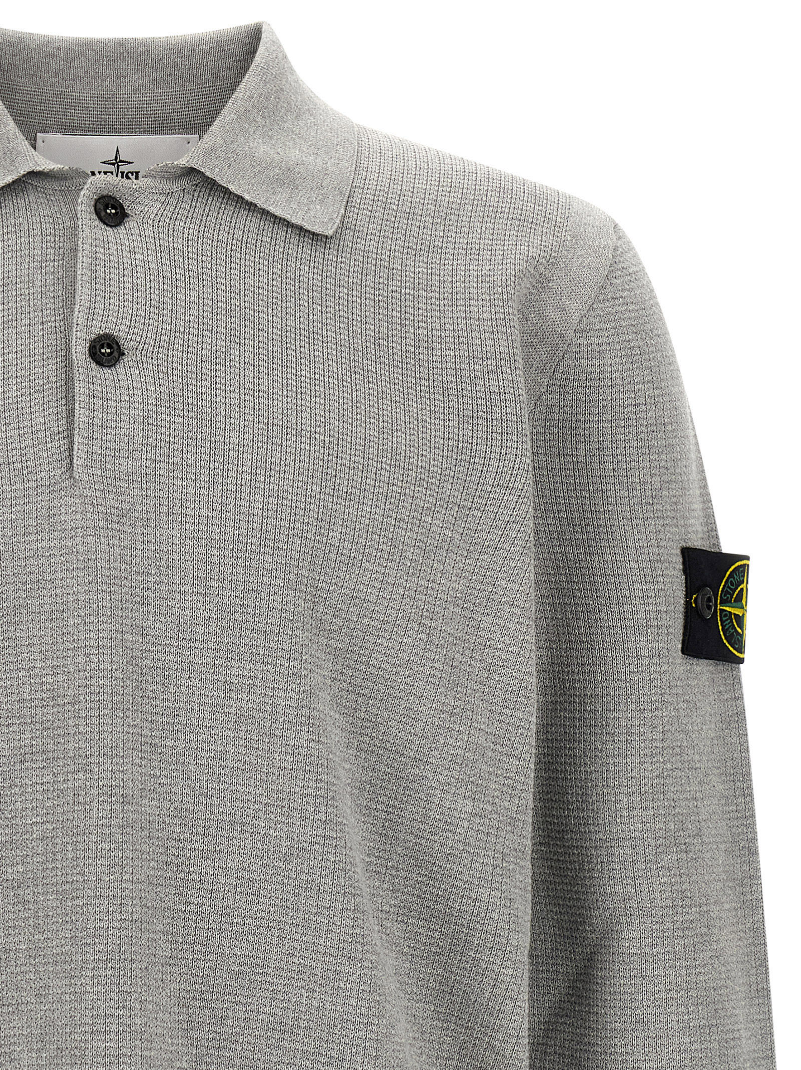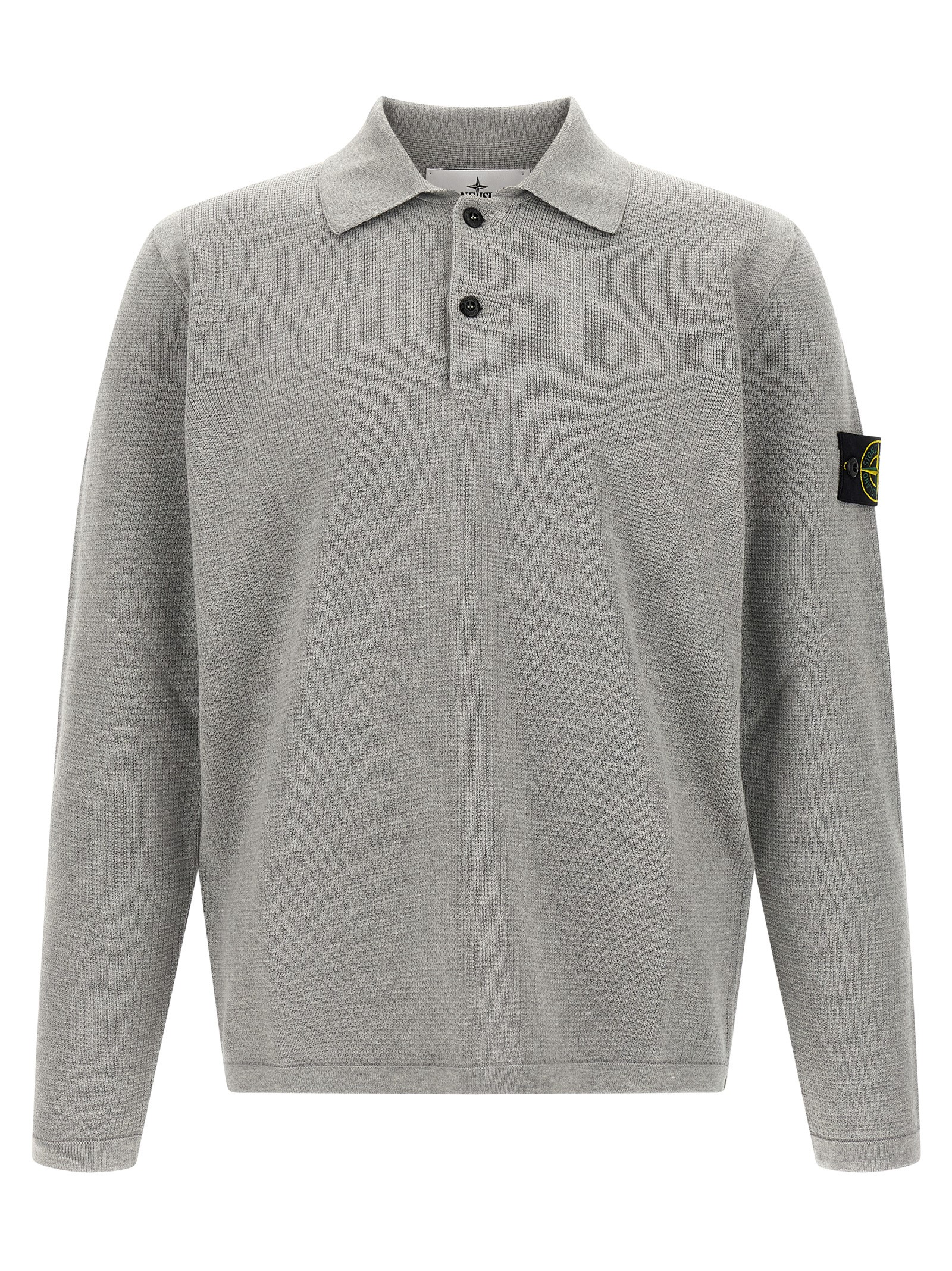 '5100024' micro fineness 14 stitch cotton polo shirt, long sleeves, collar and buttons, long sleeves with cuffs and logo badge appliqué, side slits. SUSTAINABLE: This product is made of organic cotton.