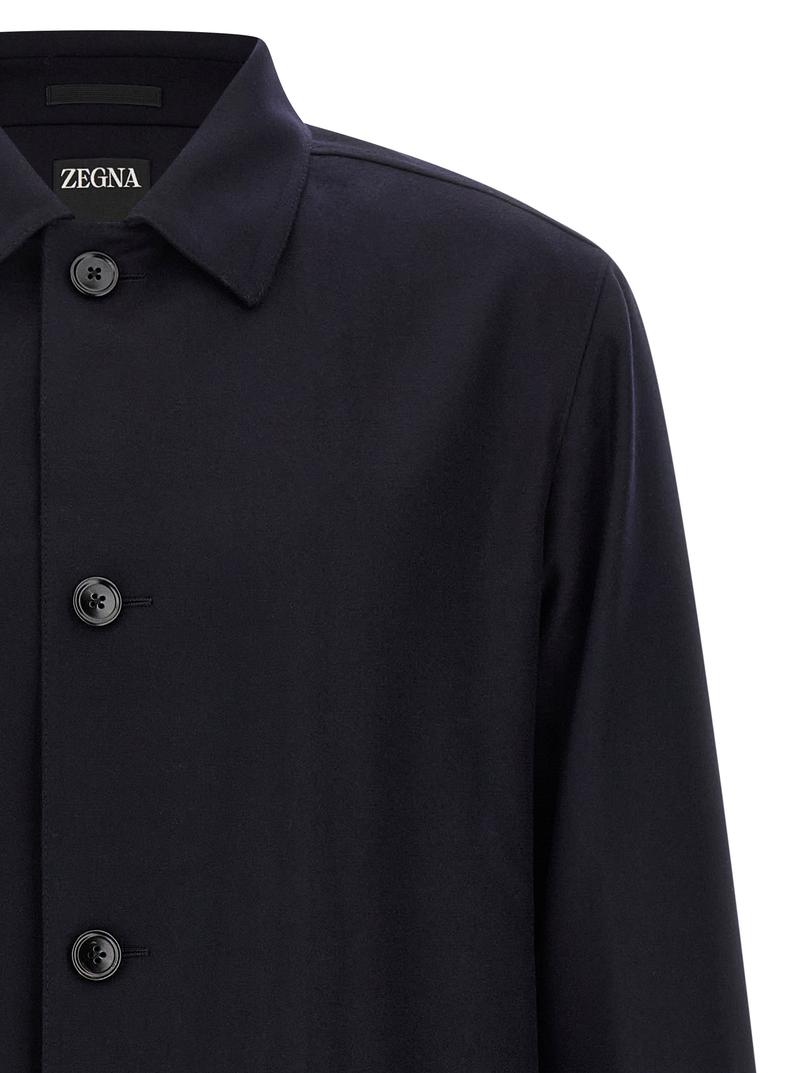 Чиста вовняна оверсайз сорочка 'Alpe', задня шкіряна нашивка 'ZEGNA 232 Road Brand Mark', застібка на гудзики спереду, кишені, довгі рукави з манжетами, розрізи ззаду.