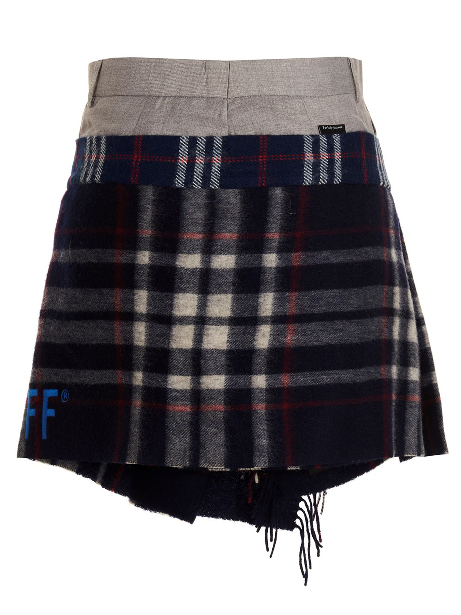 'Check Scarf Reworked' вовняна спідниця з застібкою на гачок та гудзик та вкладишем з вовни в клітинку з бахромою. Це вінтажна модель, тому різні моделі для кольорів та принтів. Будь ласка, зв'яжіться з нами, якщо у вас є переваги щодо шаблону.
