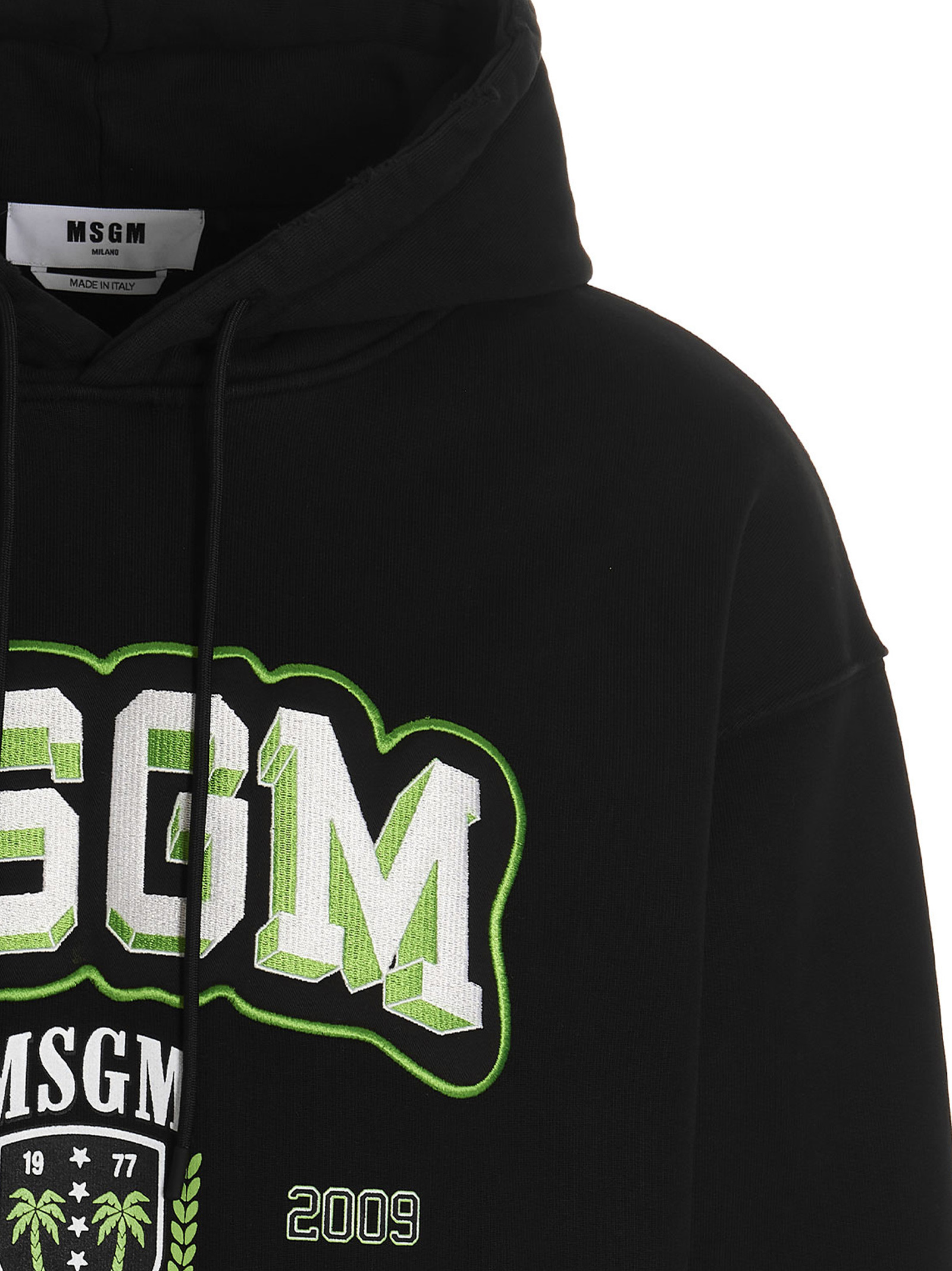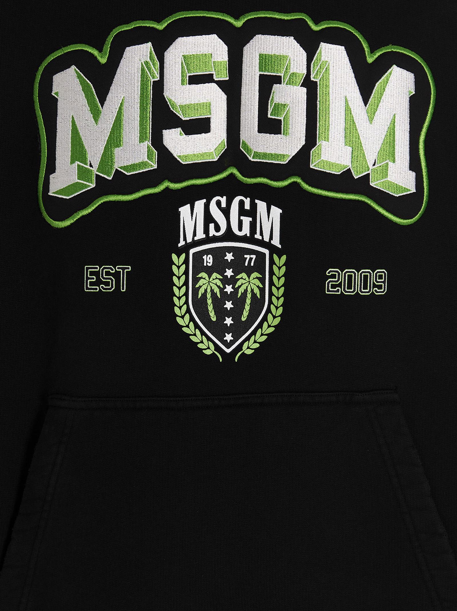 'College' cotton hoodie with front logo print, a kangaroo pocket, and long cuffed sleeves.