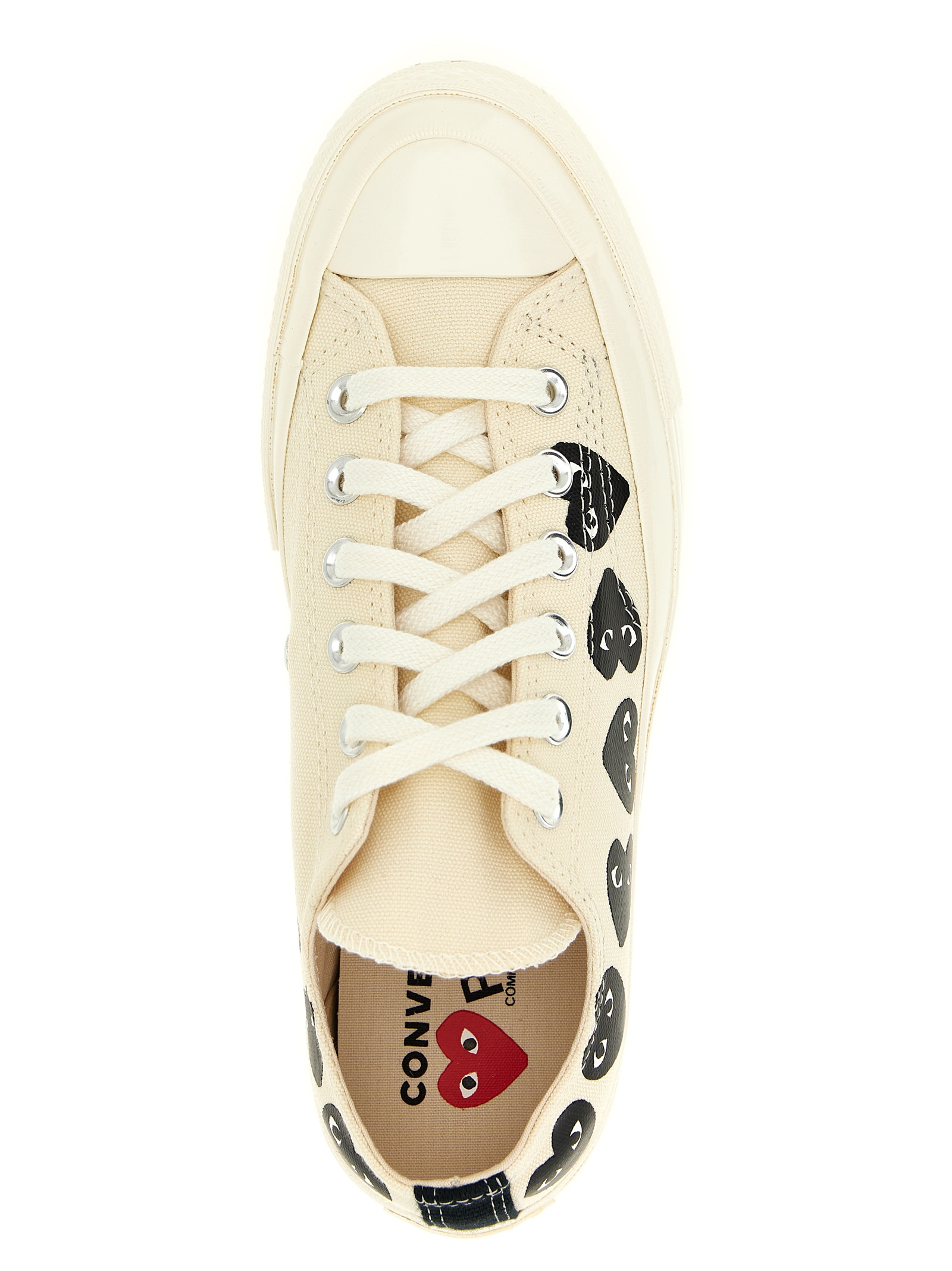 Comme des Garçons Play x Converse канвасні кросівки з контрастним принтом 'Heart', шнурівка, гумова підошва.