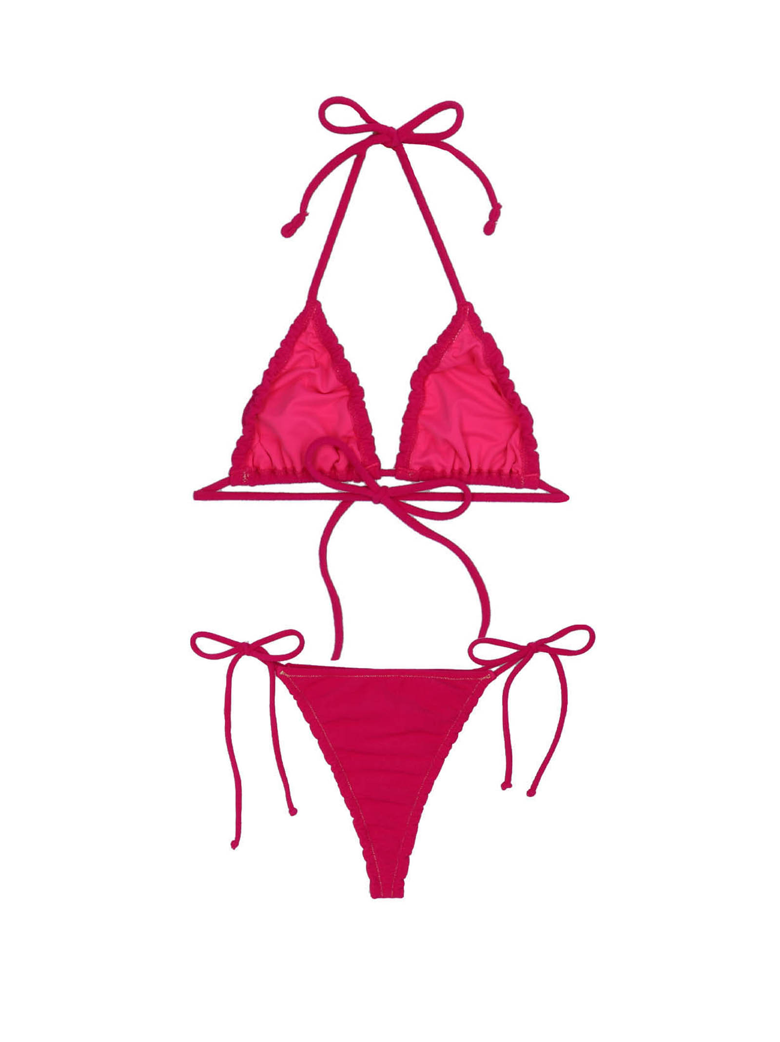 Concetta' beach towel-style fabric bikini with triangle top and high waist bottoms with laces.