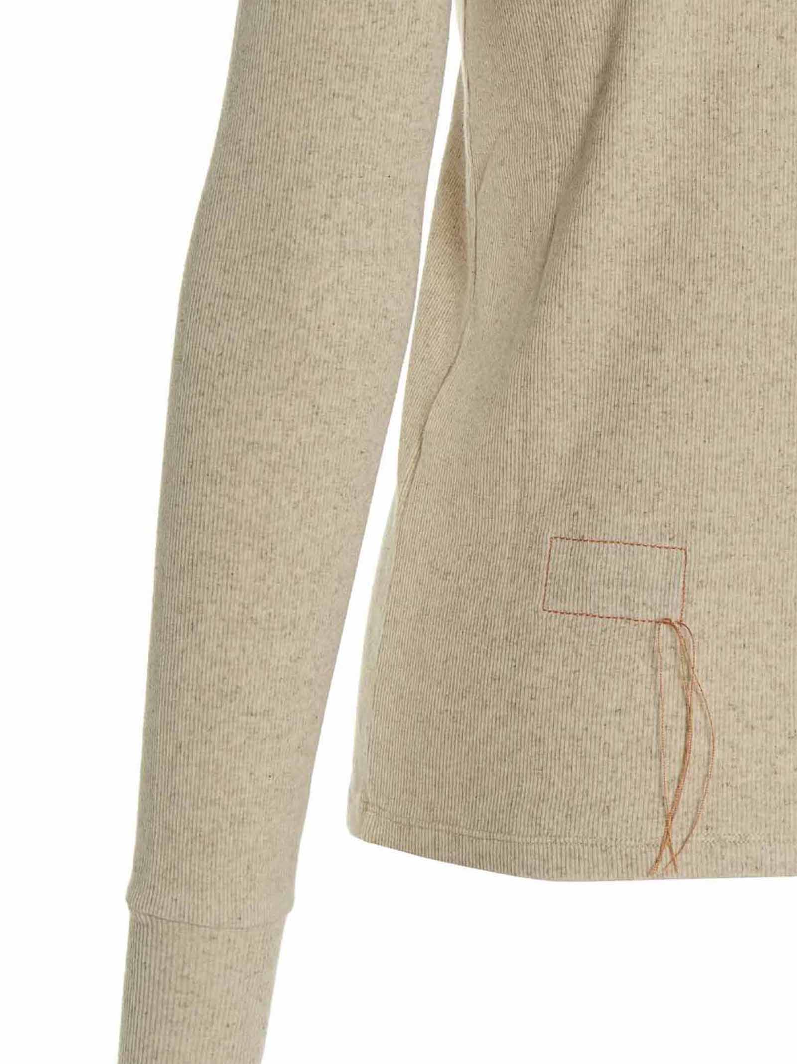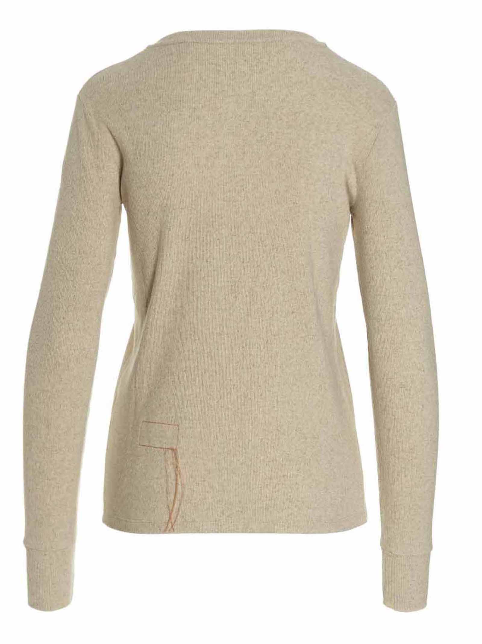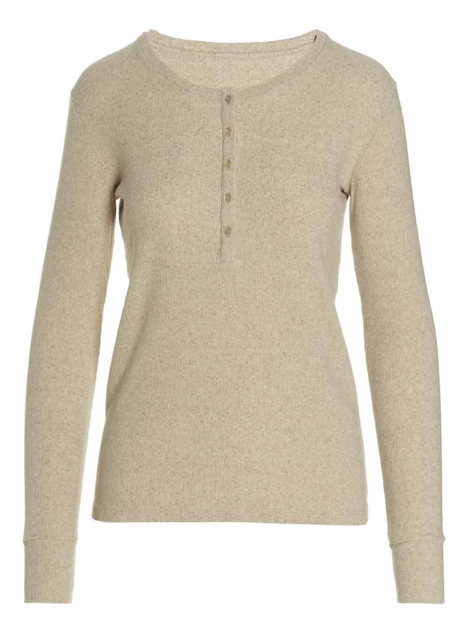 Henley 'Coralie' ribbed cotton blend sweater featuring a crewneck with buttons and long sleeves.