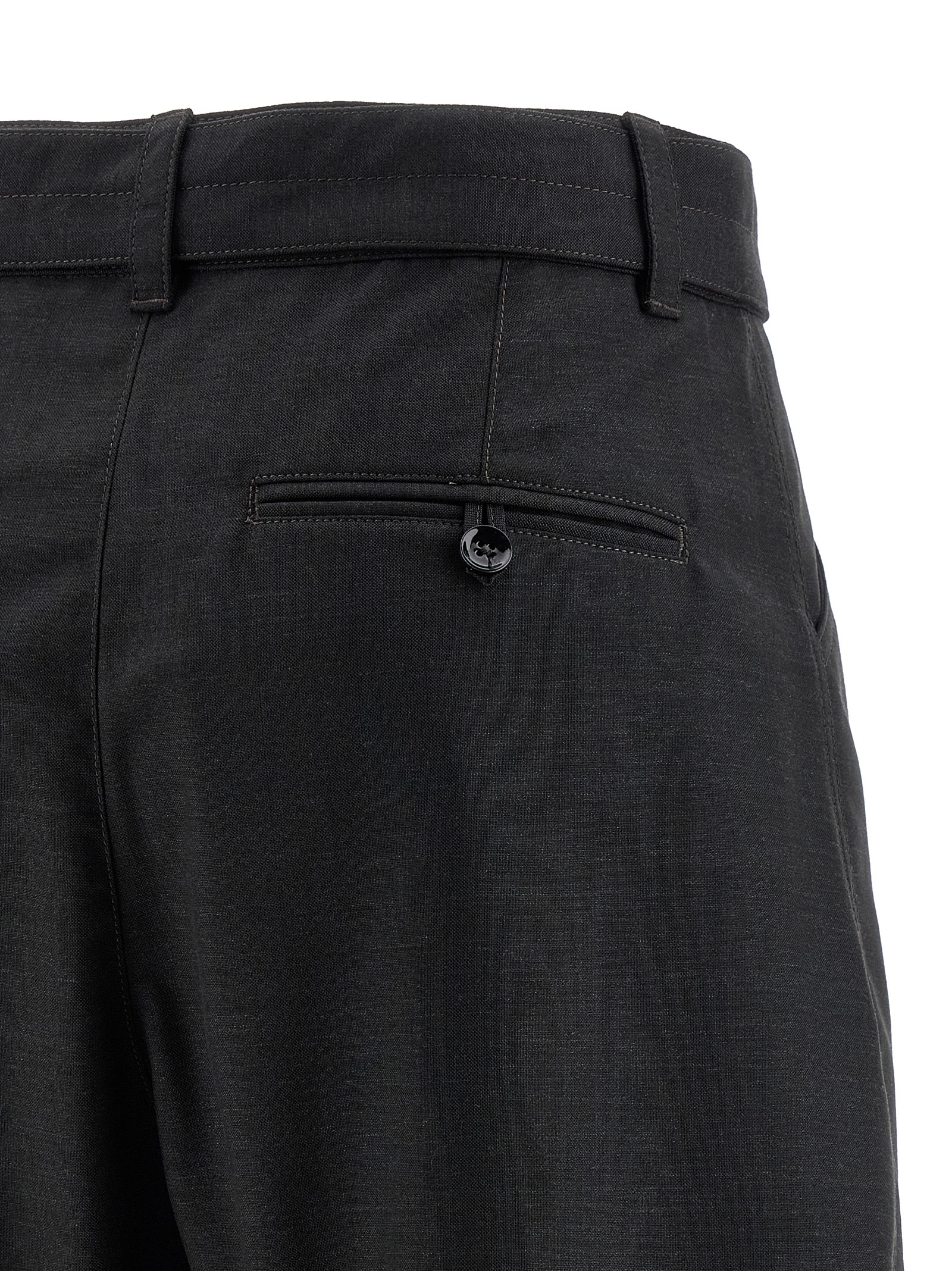 Штани 'Curved Tailored' прямого крою з вовни, петлі для ременя на талії з регульованим поясом з пряжкою, застібка на блискавці, гачку та ґудзику спереду, кишені, регульована стрічка з ґудзиком на манжетах.