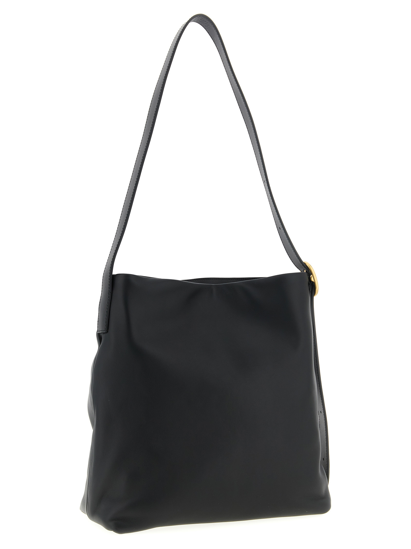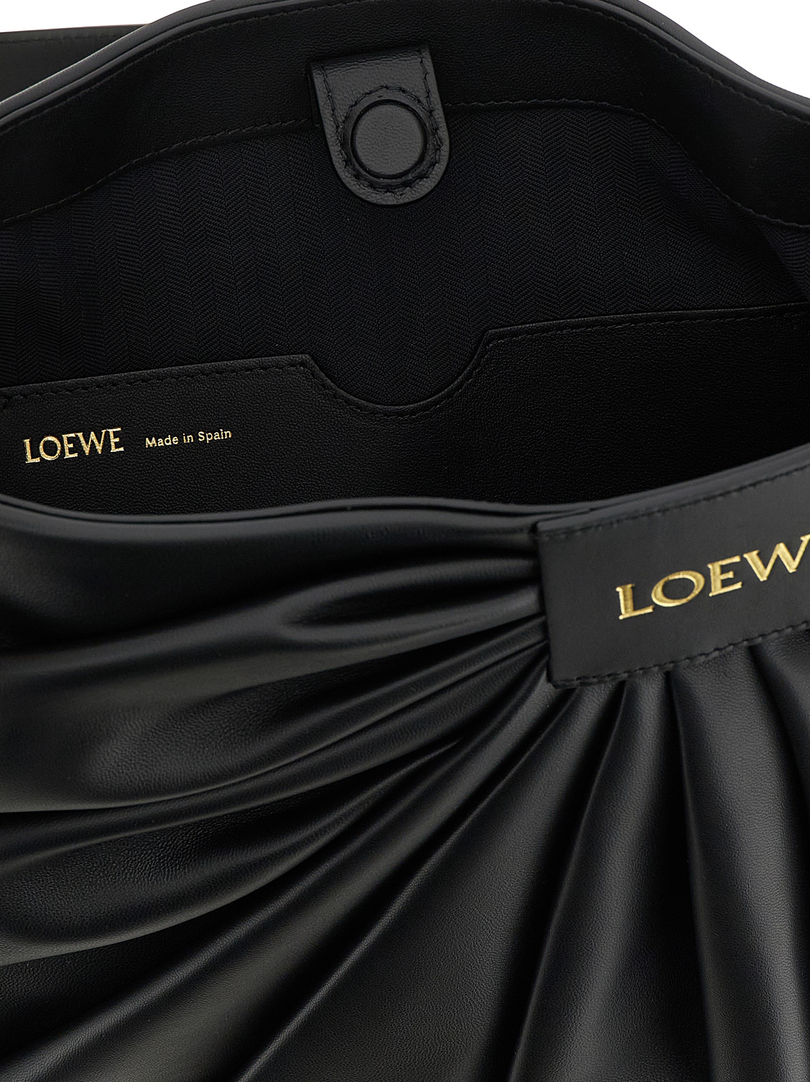 'Draped Tote' сумка через плече з гладкої шкіри з тисненим логотипом, з якого починається передня драпіровка, регульований плечовий ремінь з антикварною металевою пряжкою, магнітна застібка, підкладка з бавовняного канвасу в гусиній клітинці.