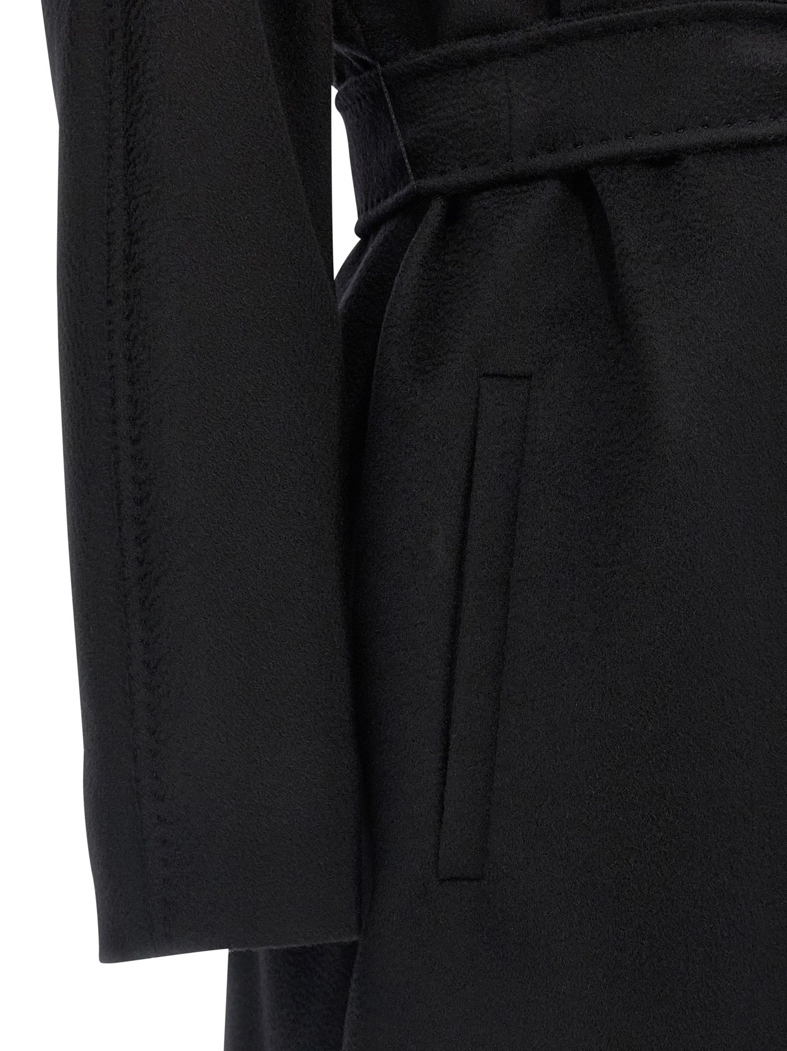 'Dravenna' пальто з чистої вовни з обробкою з кравецької точки, стиль халата, розширена силует, лацканний комір, кишені, довгі рукави-кімоно, підкладка з монограмної віскози, знімний пояс.