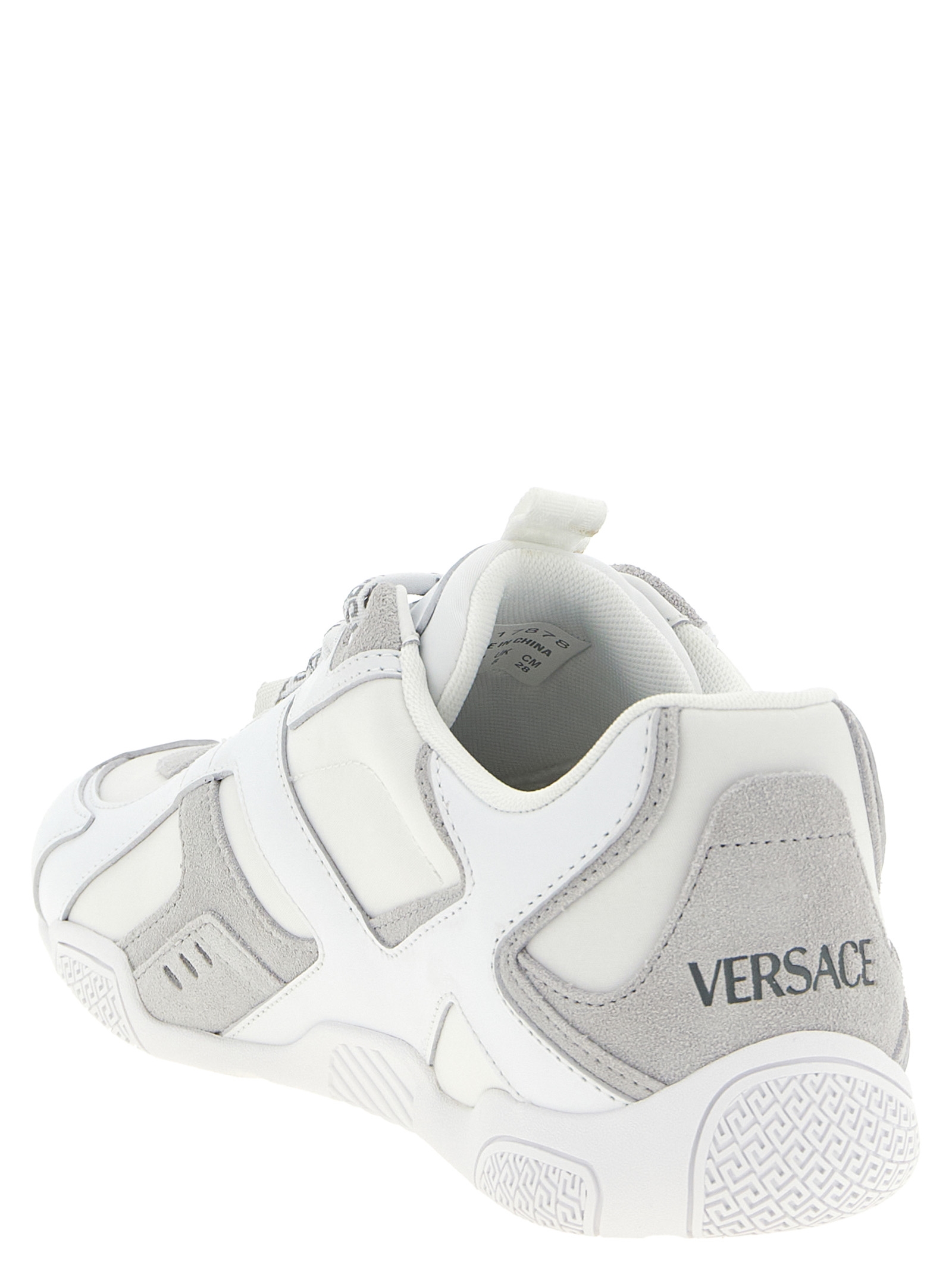 Кросівки з телячої шкіри, замші та технічної тканини, устілка з принтом логотипу 'Galaxia', тиснений логотип на язичку та п'яті, бічний металевий логотип, округлий носок, шнурівка, гумова підошва з візерунком 'Greca'.