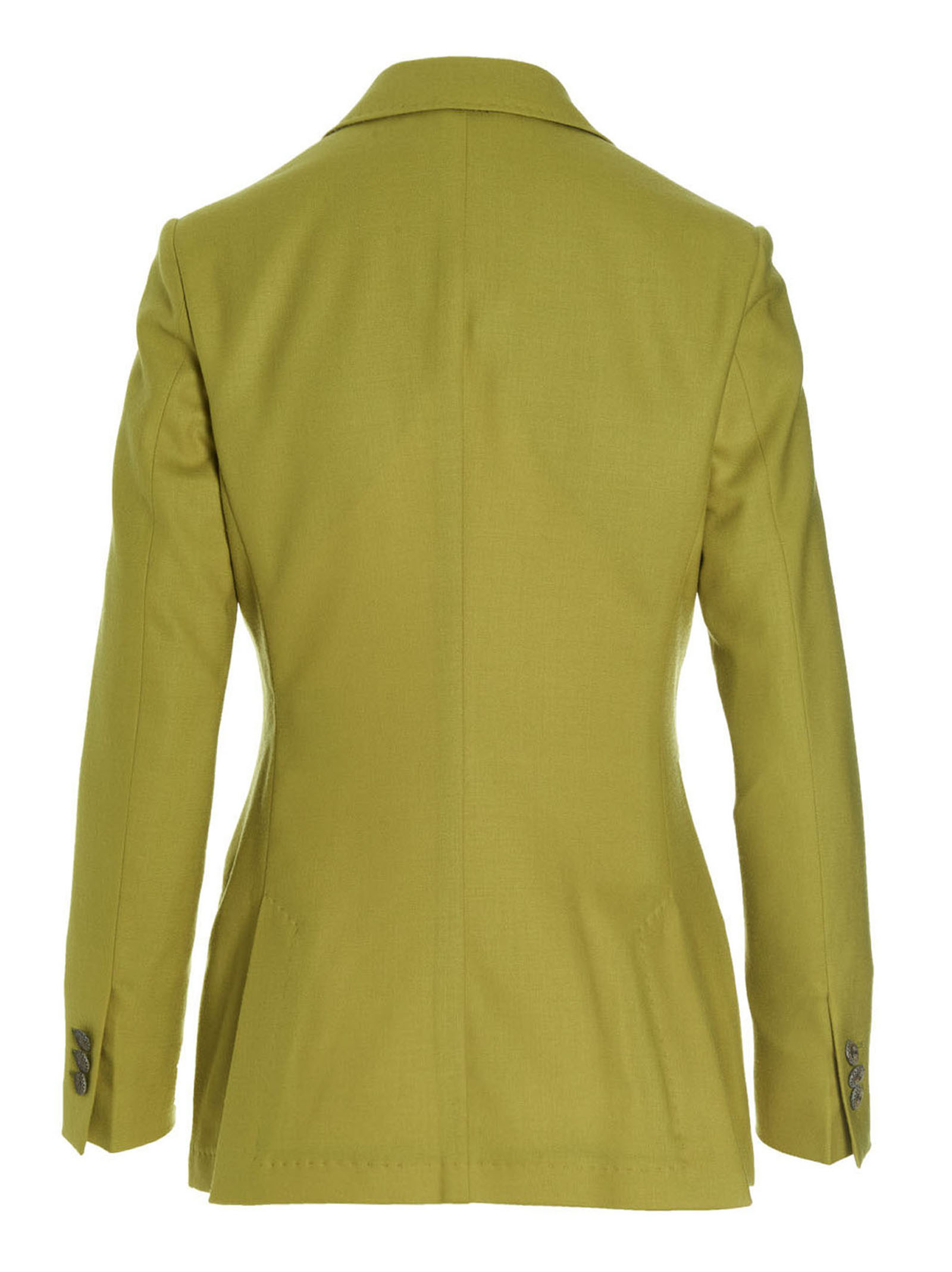 'Grace’ вовняний піджак з двобортним стилем, застібкою на гудзики, кишенями, довгими рукавами та розрізами ззаду.