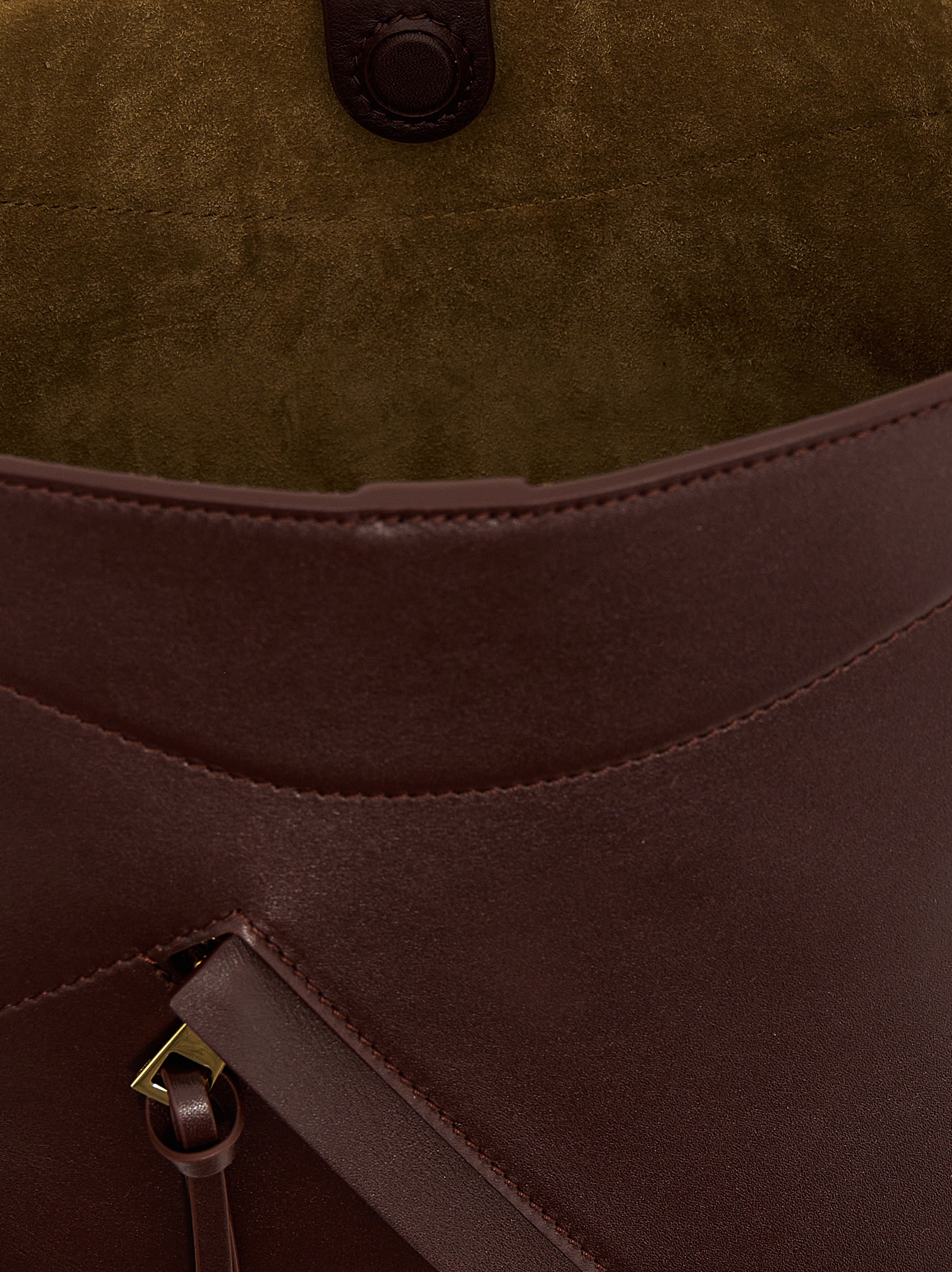 'Hammock Slice' сумка через плече з блискучої телячої шкіри, бічний тиснений логотип, магнітна застібка, підкладка з замші, передня кишеня на блискавці та витягування з 'Dado Anagram Pebble', регульований і знімний плечовий ремінь.