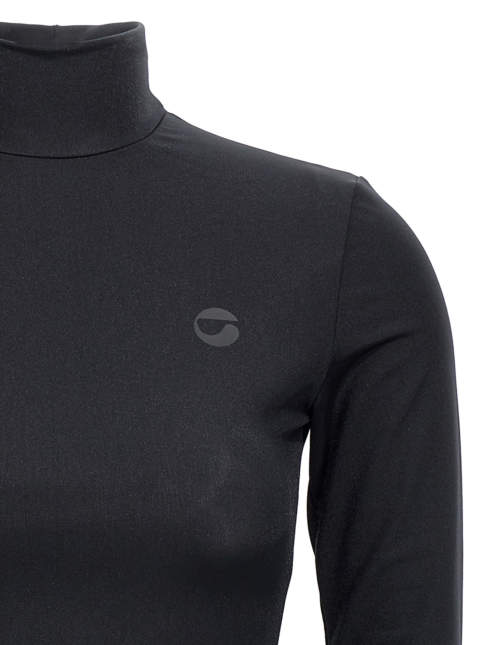 'Hybrid' сукня з технологічної тканини-светра з високим коміром і довгими рукавами з місцем для пальців та спідницею з деталями ілюзії. ЕКОЛОГІЧНИЙ: продукт виготовлений з переробленого поліестеру.