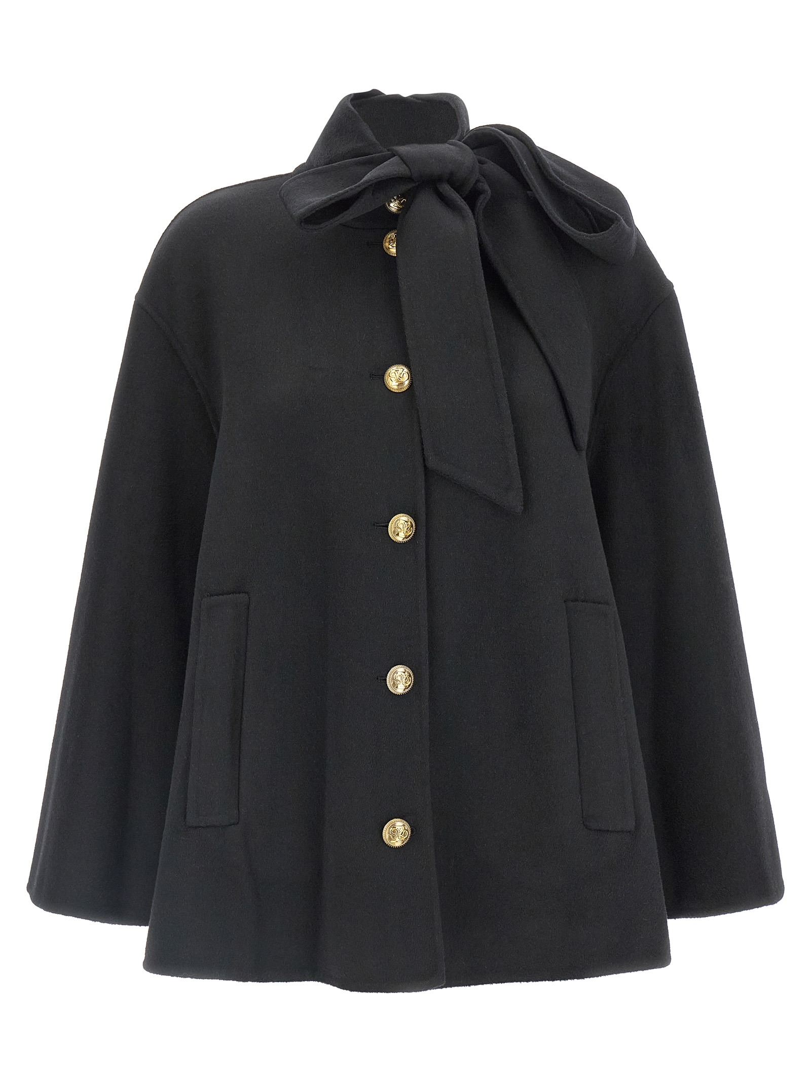 'Hypnotic' двостороннє пальто з вовняної суміші, високий комір лавальєр, передня застібка на військові гудзики, кишені, довгі широкі рукави з опущеними плечима, без підкладки.