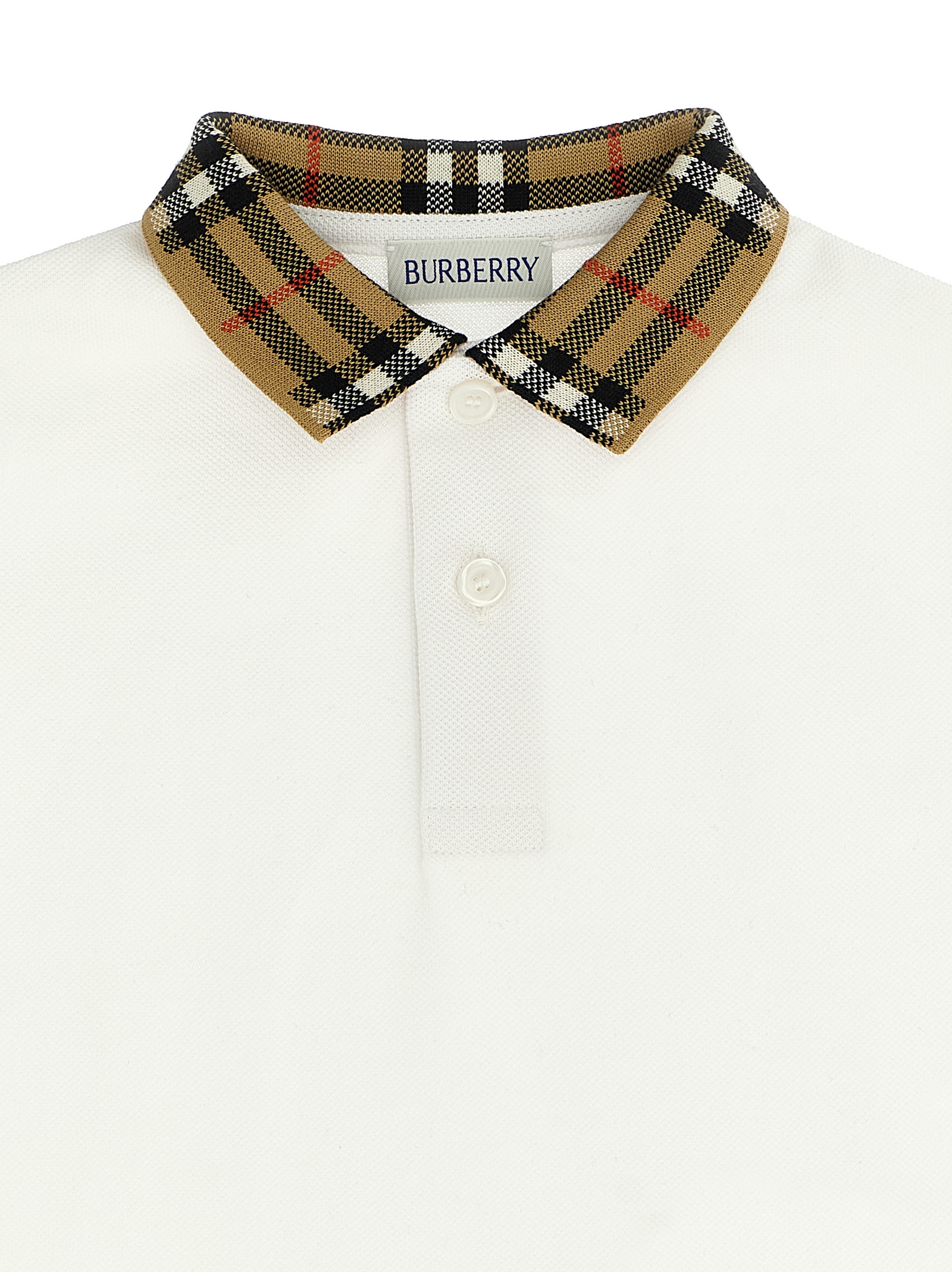ДИТЯЧИЙ 'Johane' поло з бавовняного піке з коміром і гудзиками Burberry Check, короткі рукави, асиметричний поділ, бічні розрізи.