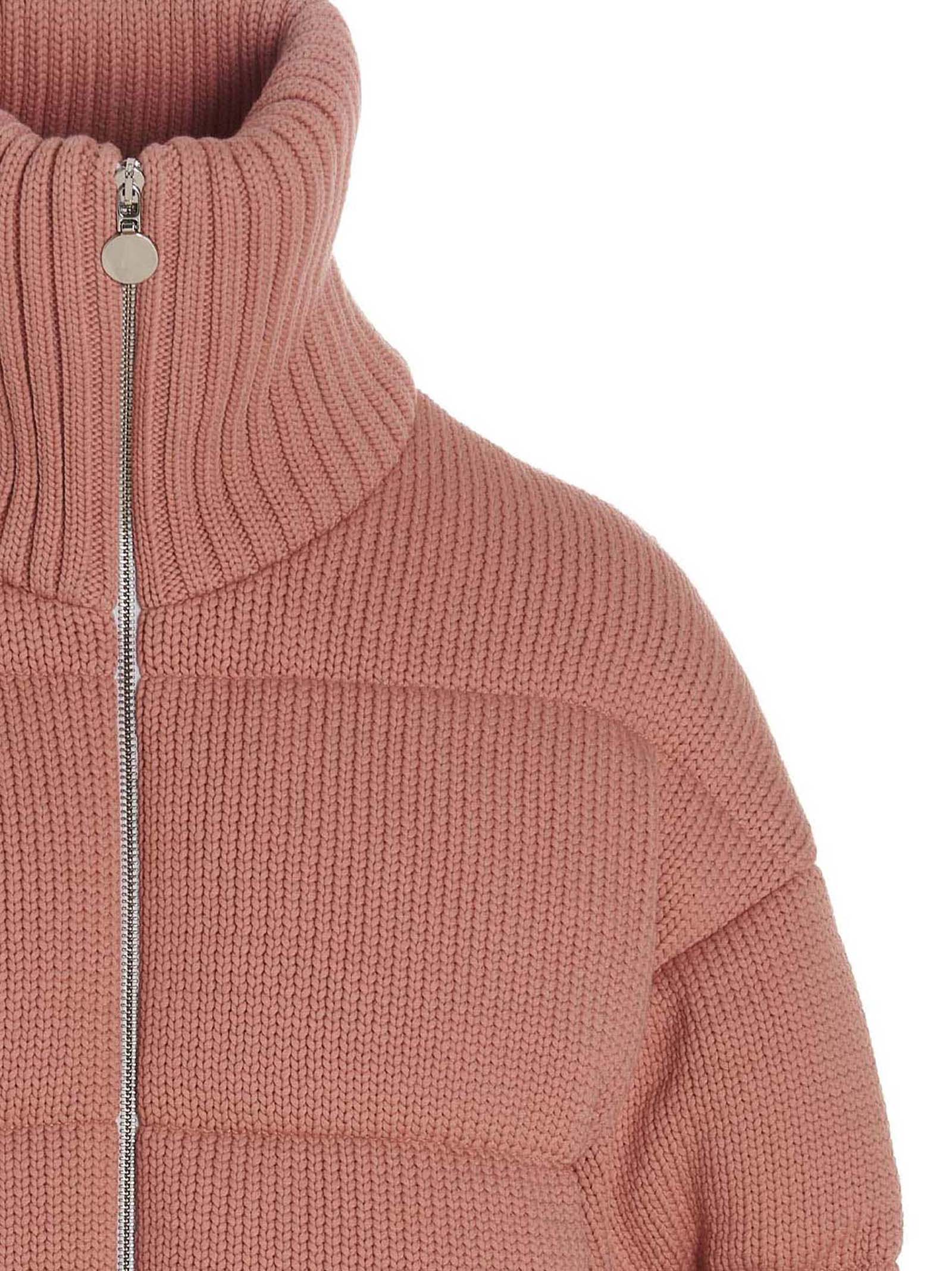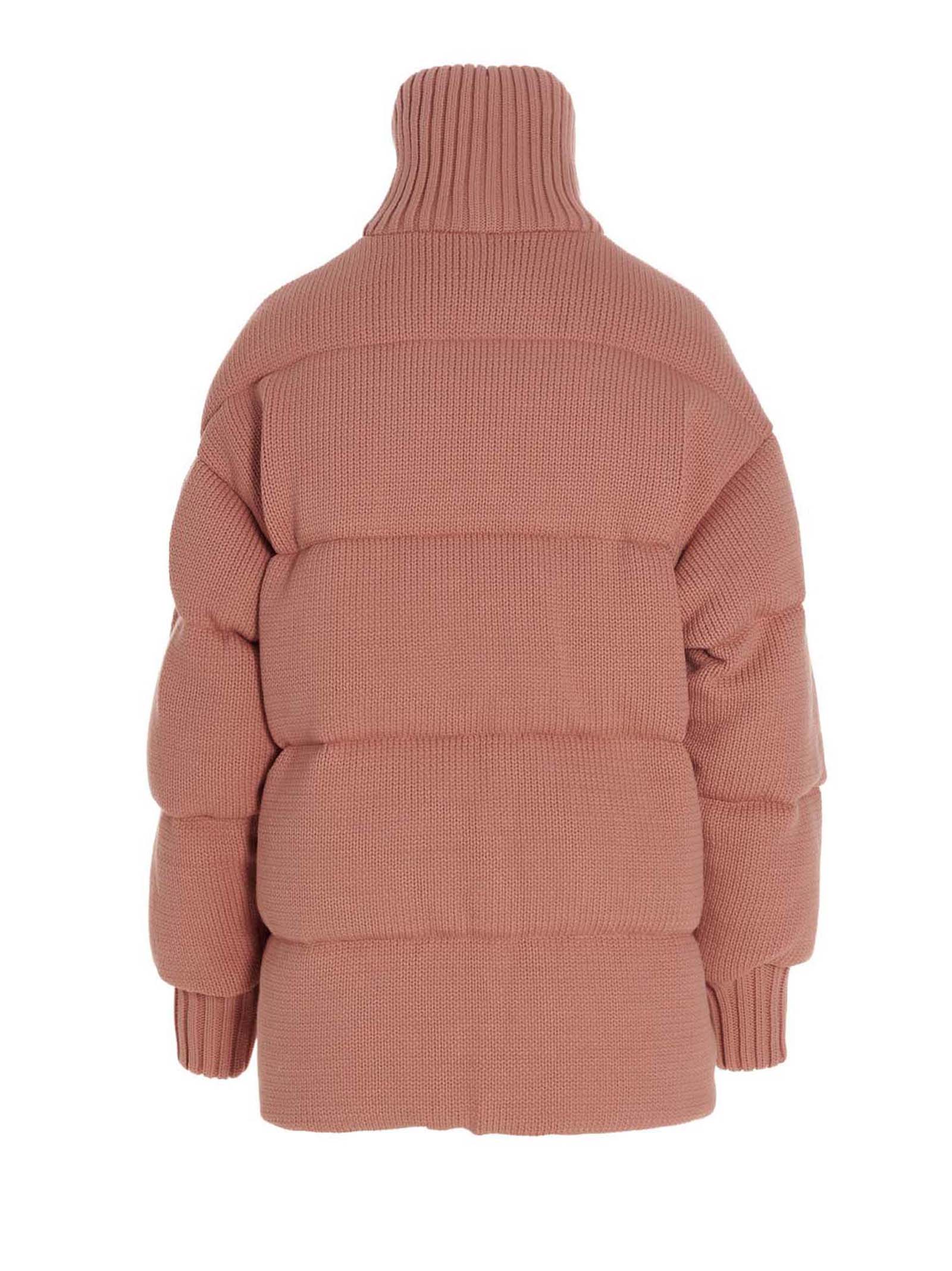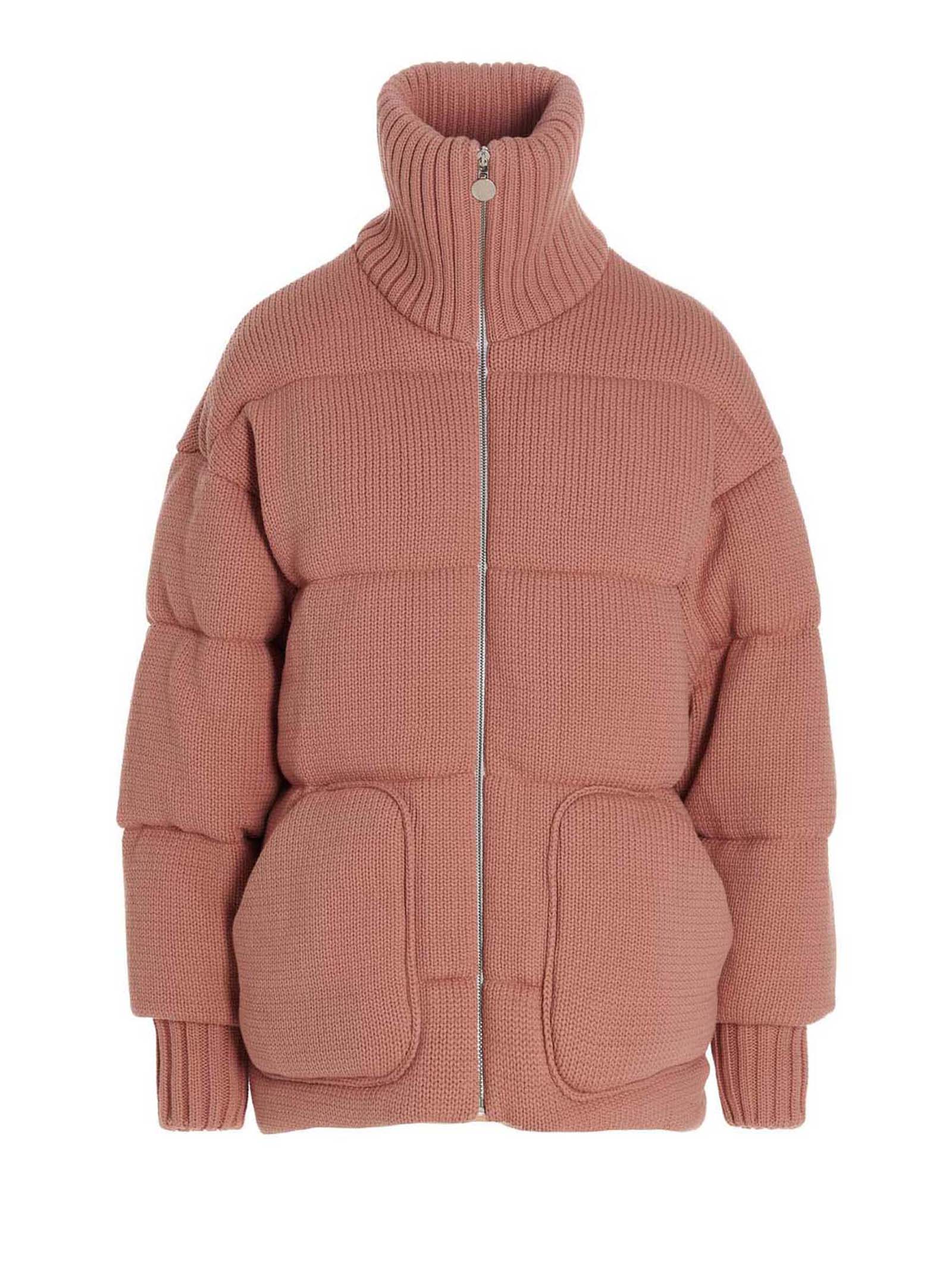 Knitted, padded down jacket, with zip closure, a high collar, long cuffed sleeves, pockets.