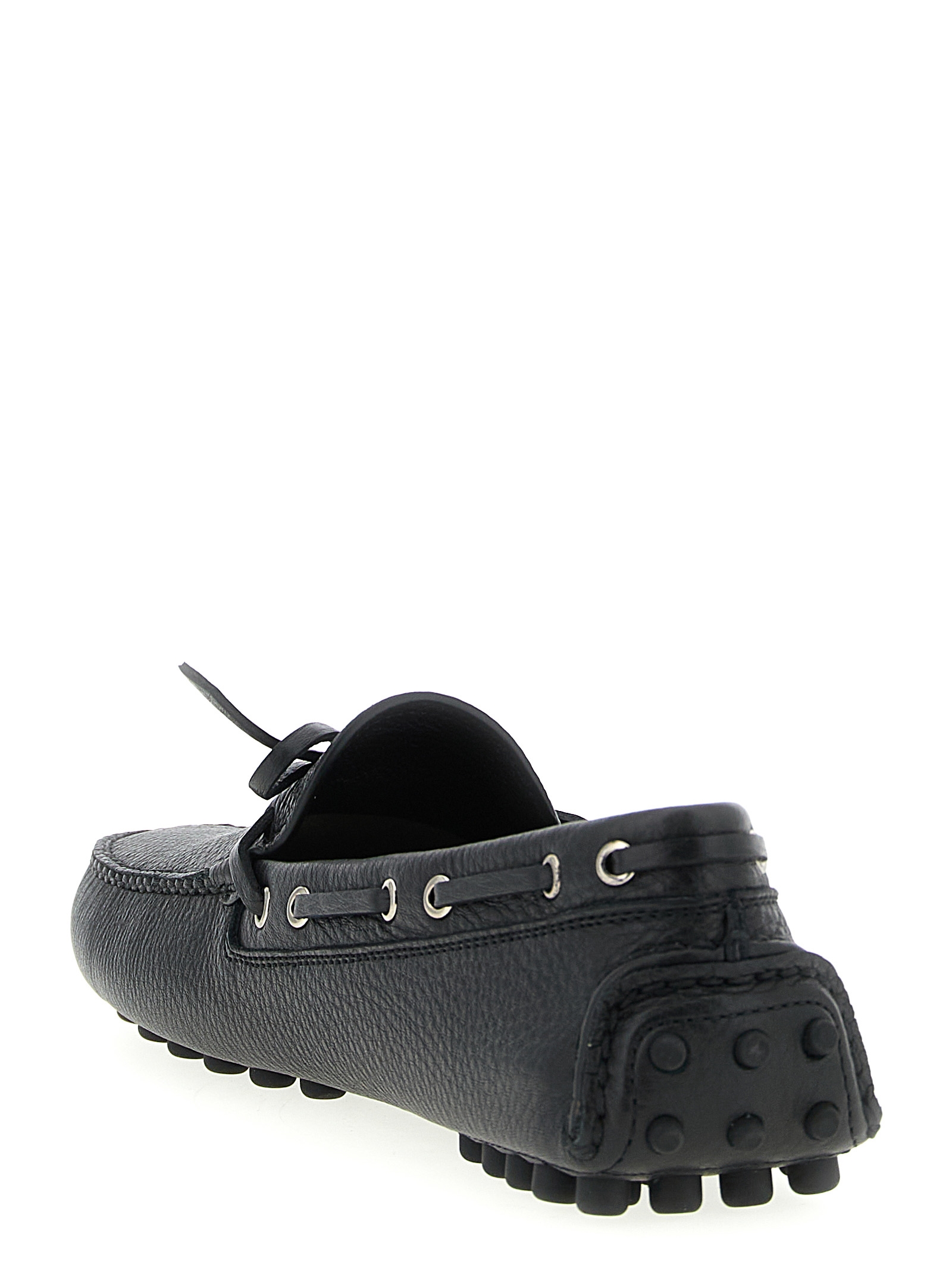 Шкіряні лофери з молотковою обробкою та трикутним логотипом спереду з емальованого металу, шнурівка спереду, гумова підошва.