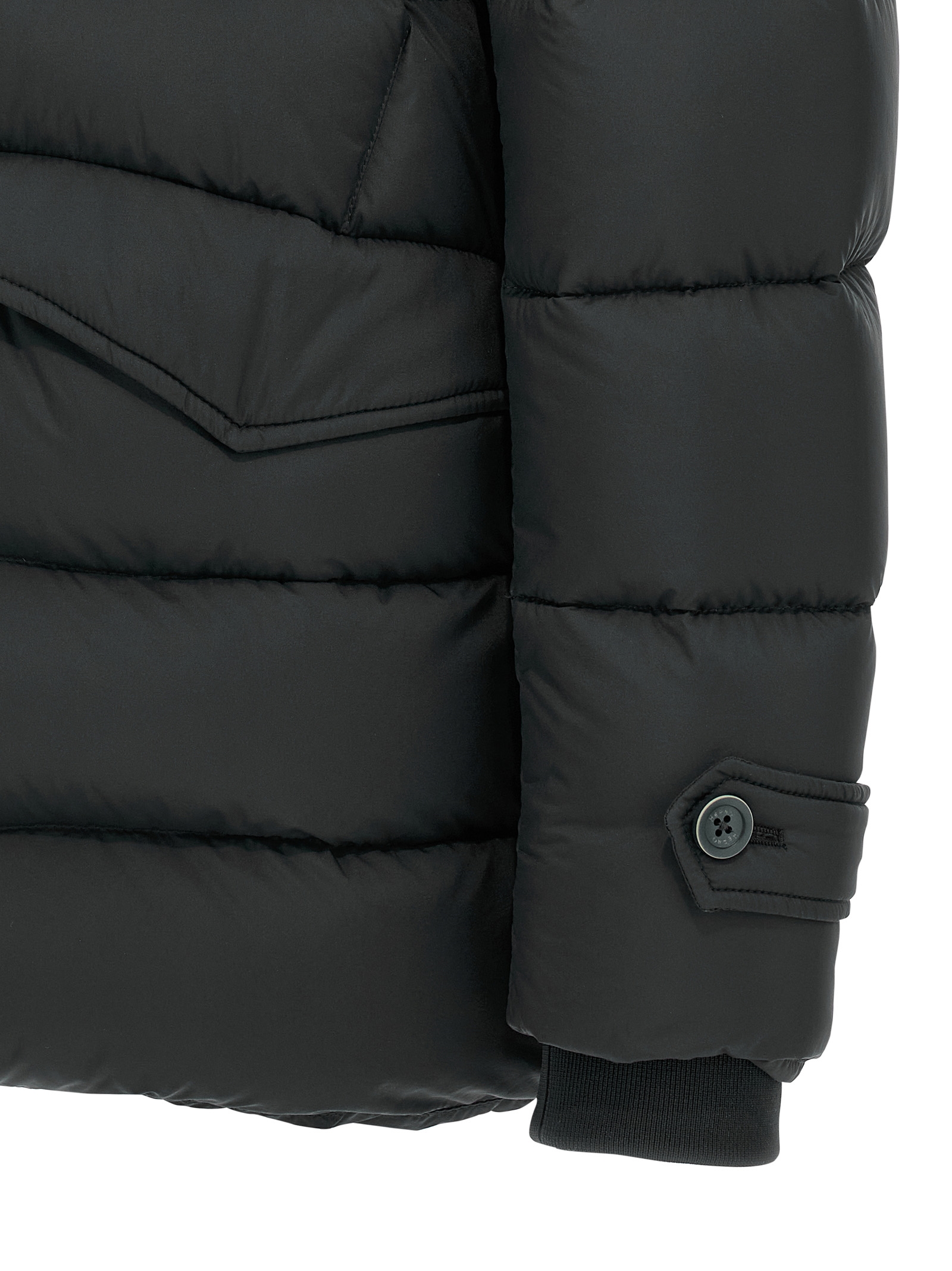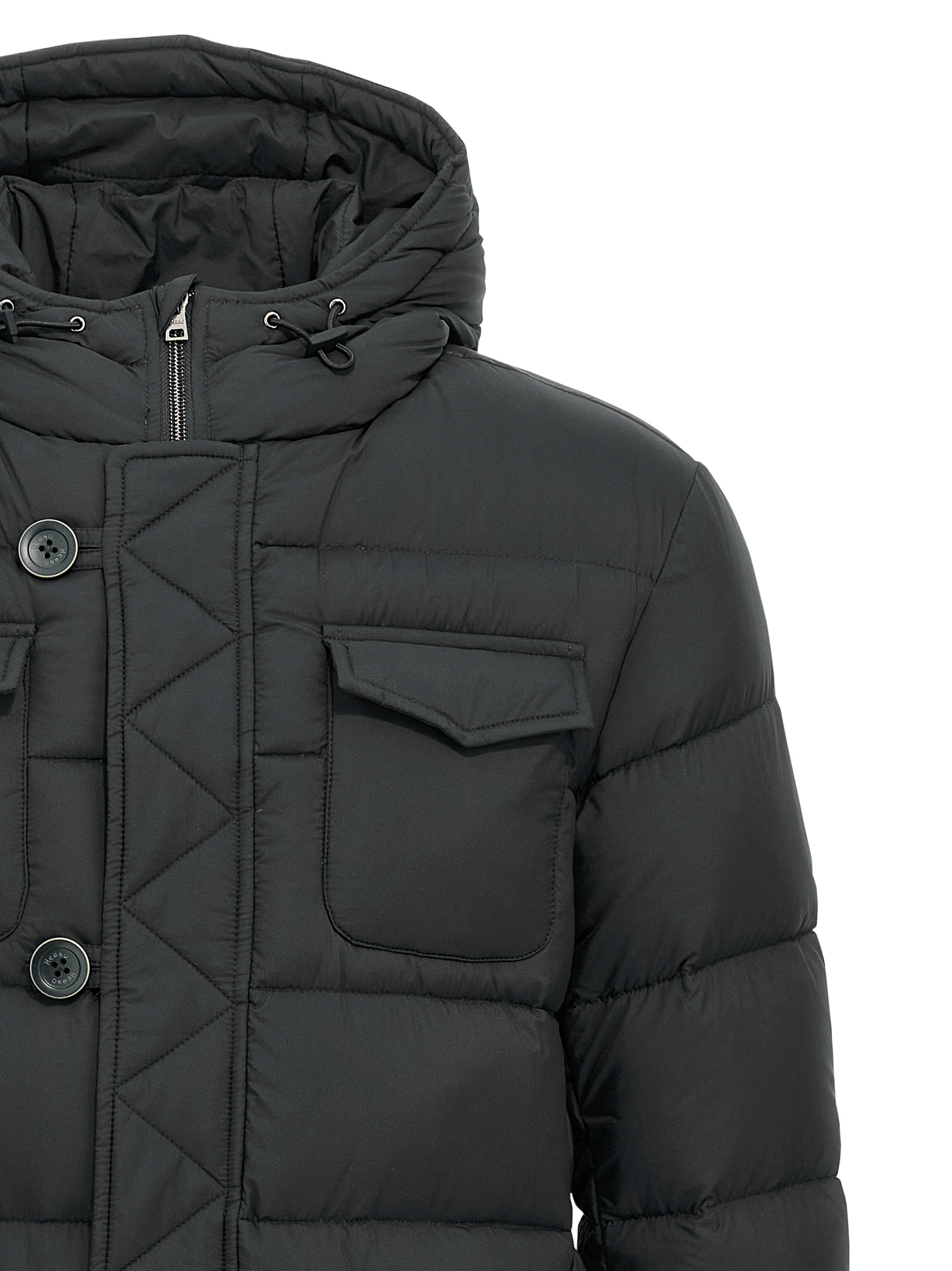 'L'Eskimo' пуховик з нейлонової мікрофібри з легким утепленням з водонепроникного гусячого пуху, регульованим капюшоном, застібкою на блискавці та гудзиках спереду, кишенями, довгими рукавами з манжетами з еластичної в'язки.