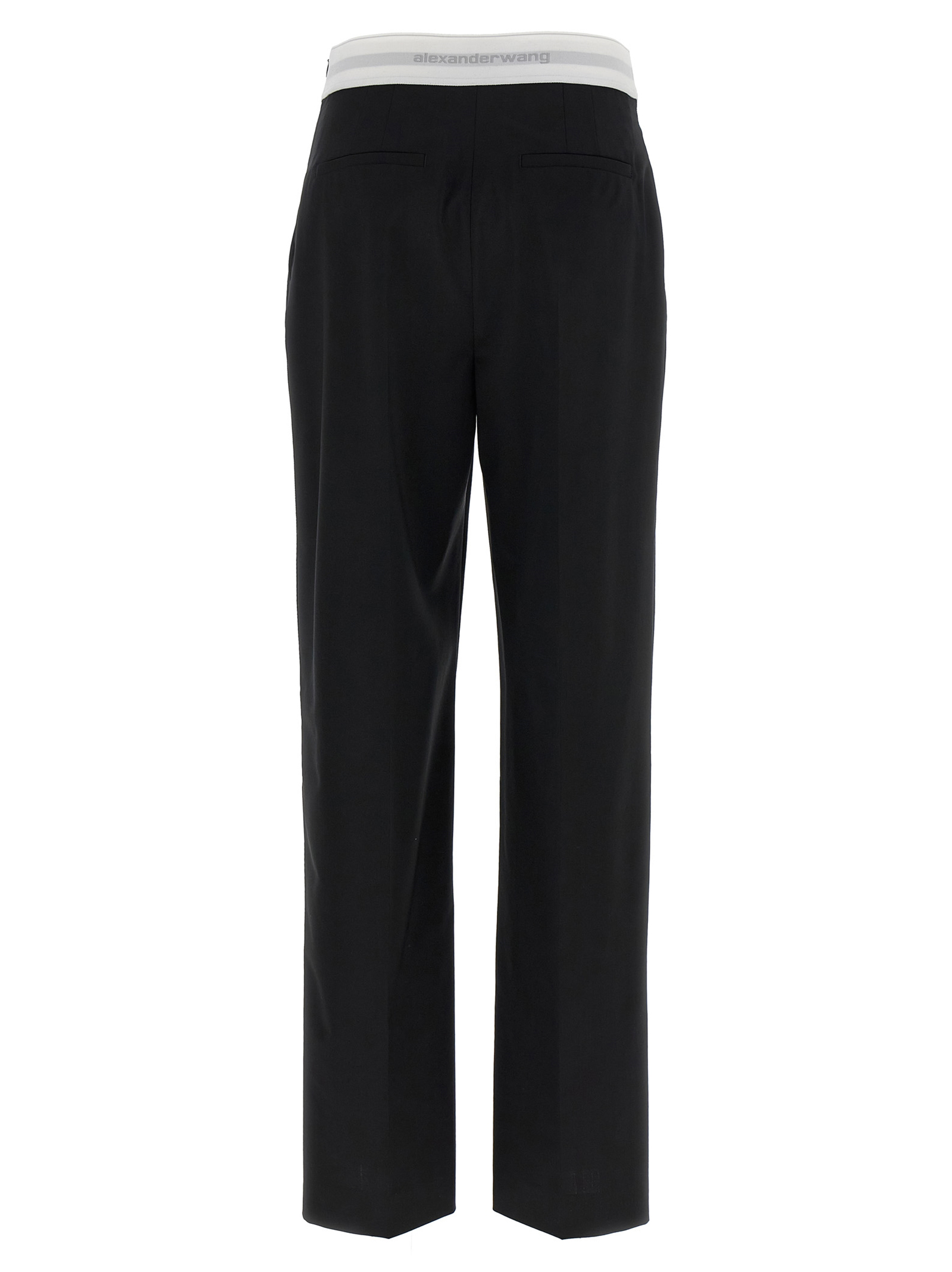 Вовняні штани, еластичні з контрастним жакардовим логотипом на поясі, складками та розтягнутими складками, прямі штанини, обманний клапан, кишені, бічна застібка на блискавці.