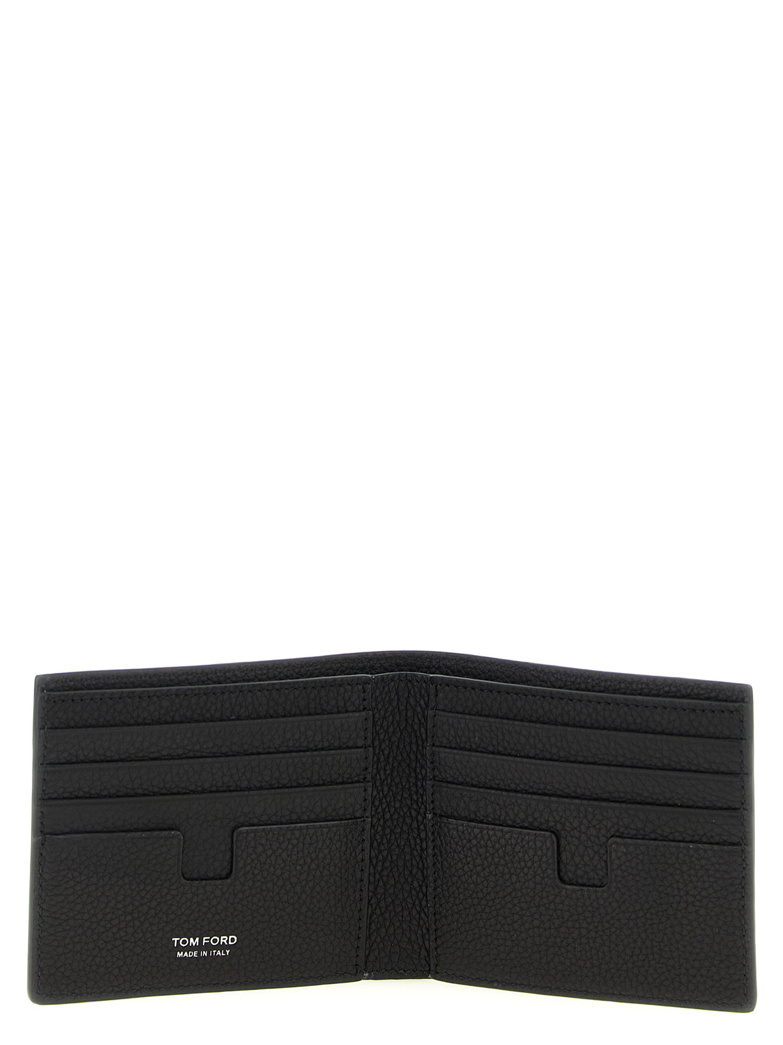 Гаманець з бордової шкіри, передня частина з тисненим логотипом, відкриття як книга.