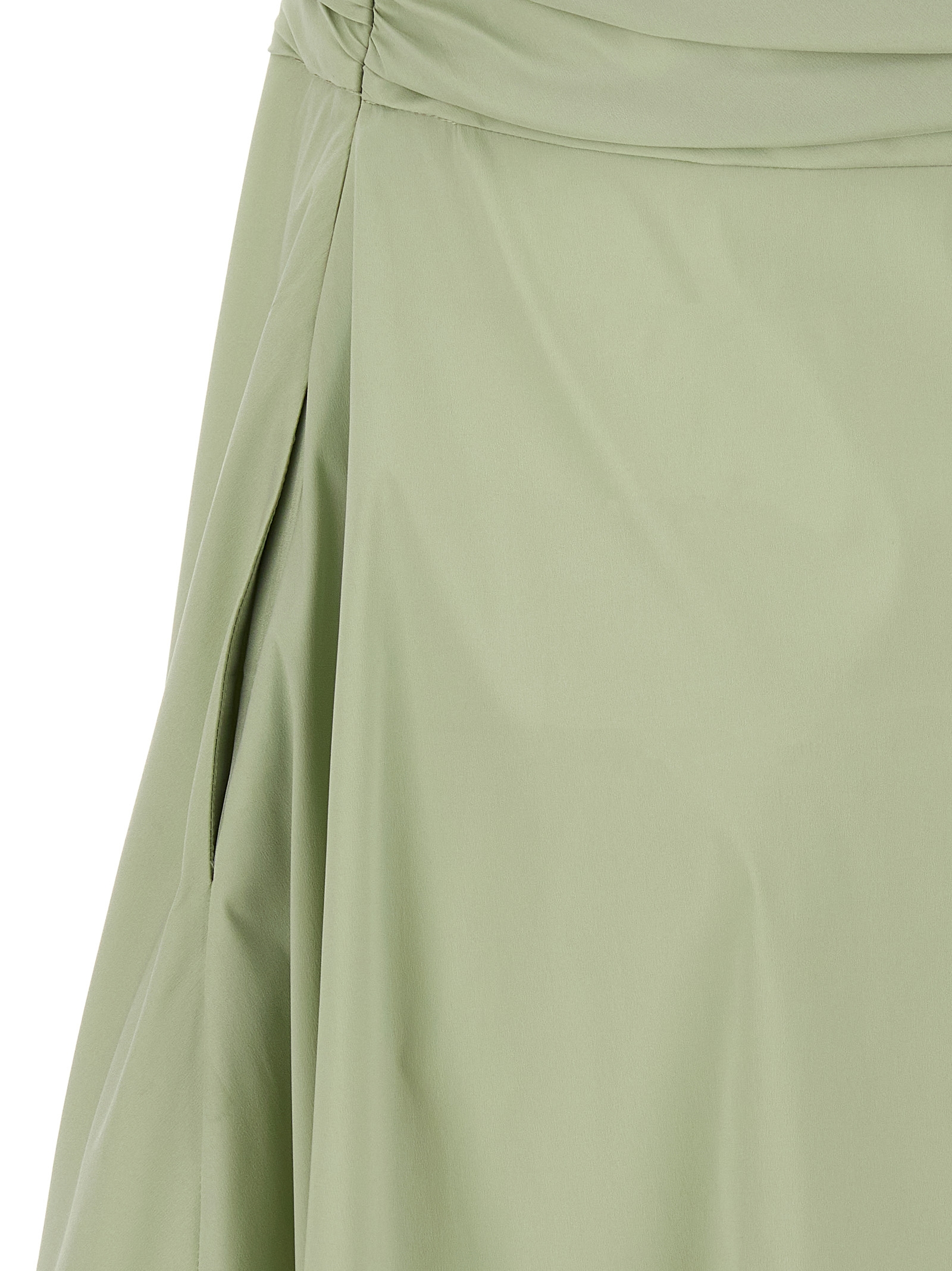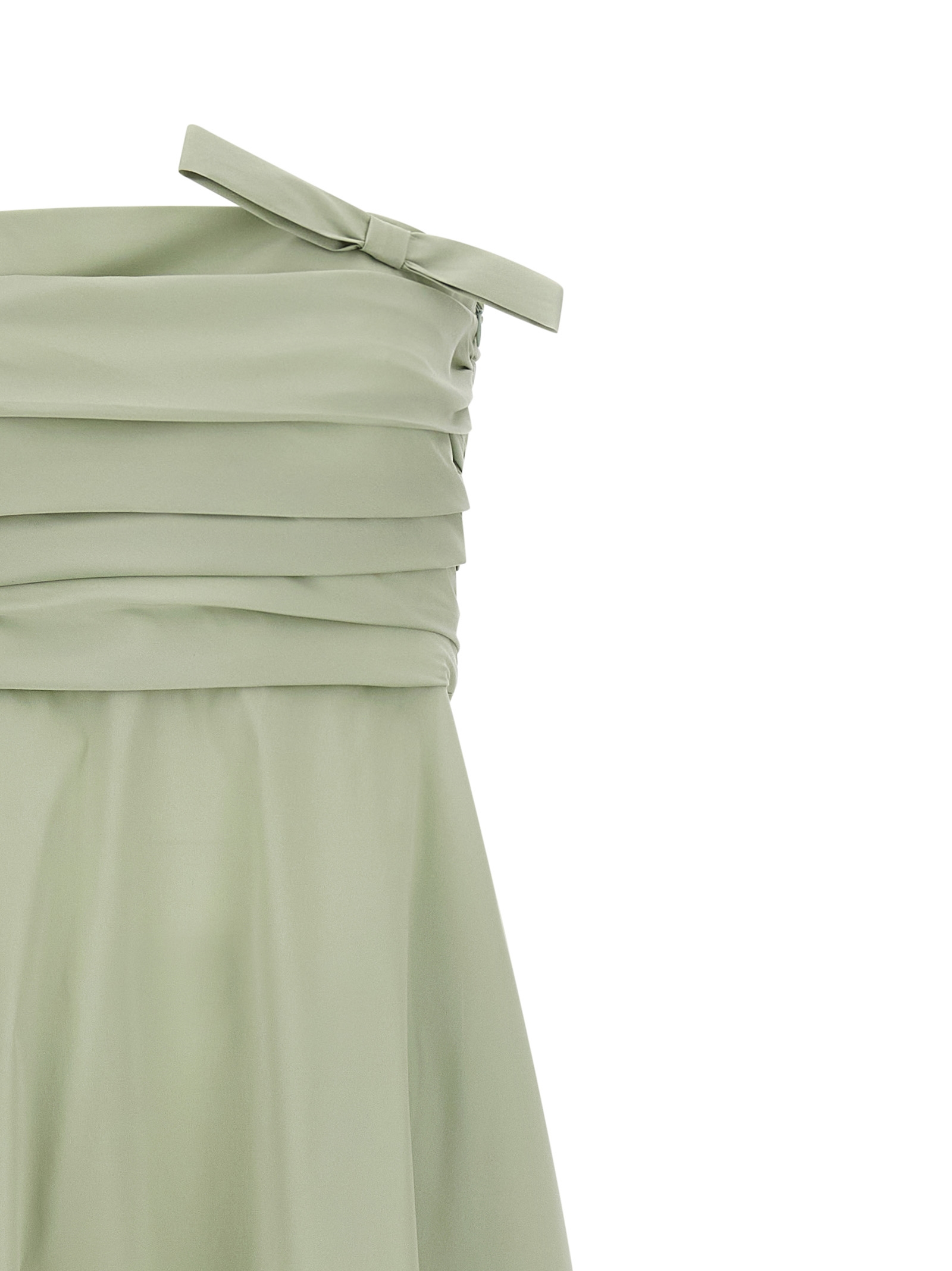 Довга сукня 'Lucinda' з тканини тафета, модель без плечей з завитком на бюсті спереду та ззаду, деталь з бантом в тон спереду, без рукавів, широка та повітряна спідниця, кишені, застібка на блискавці з боку.