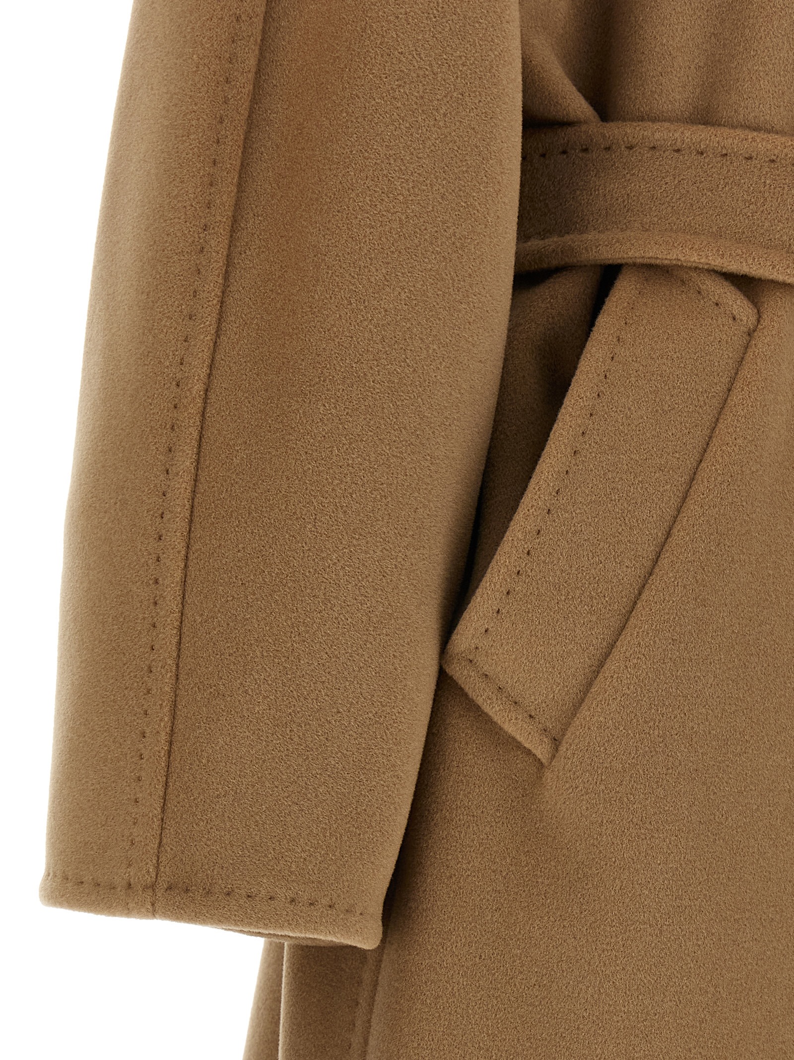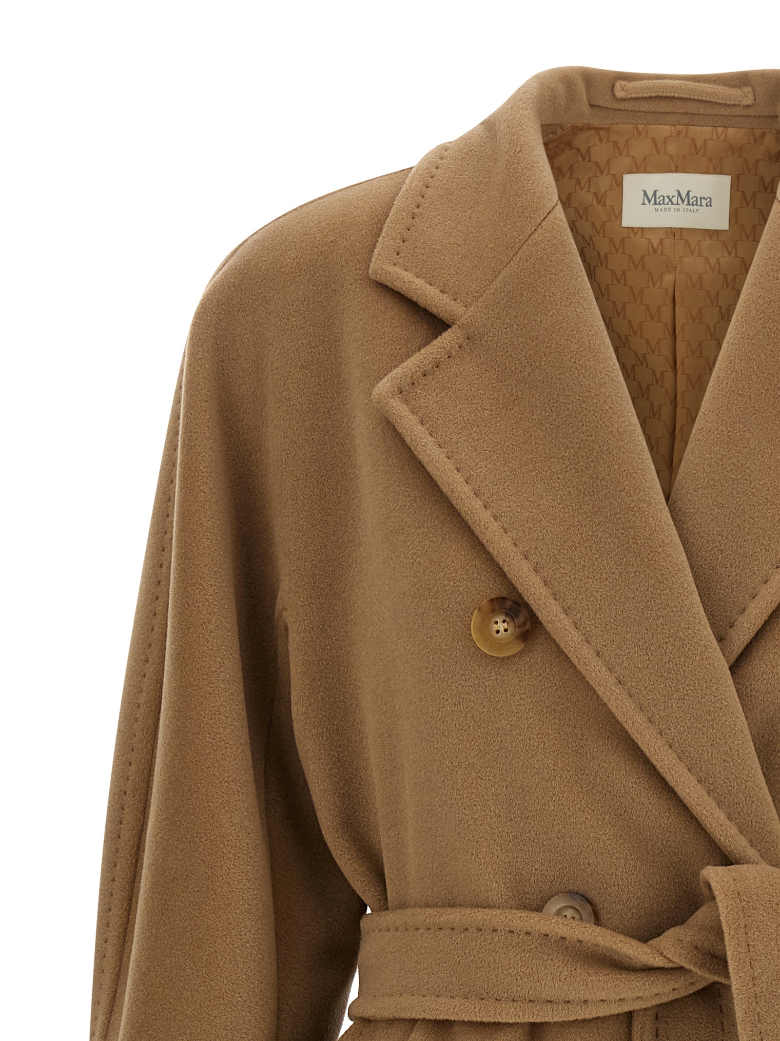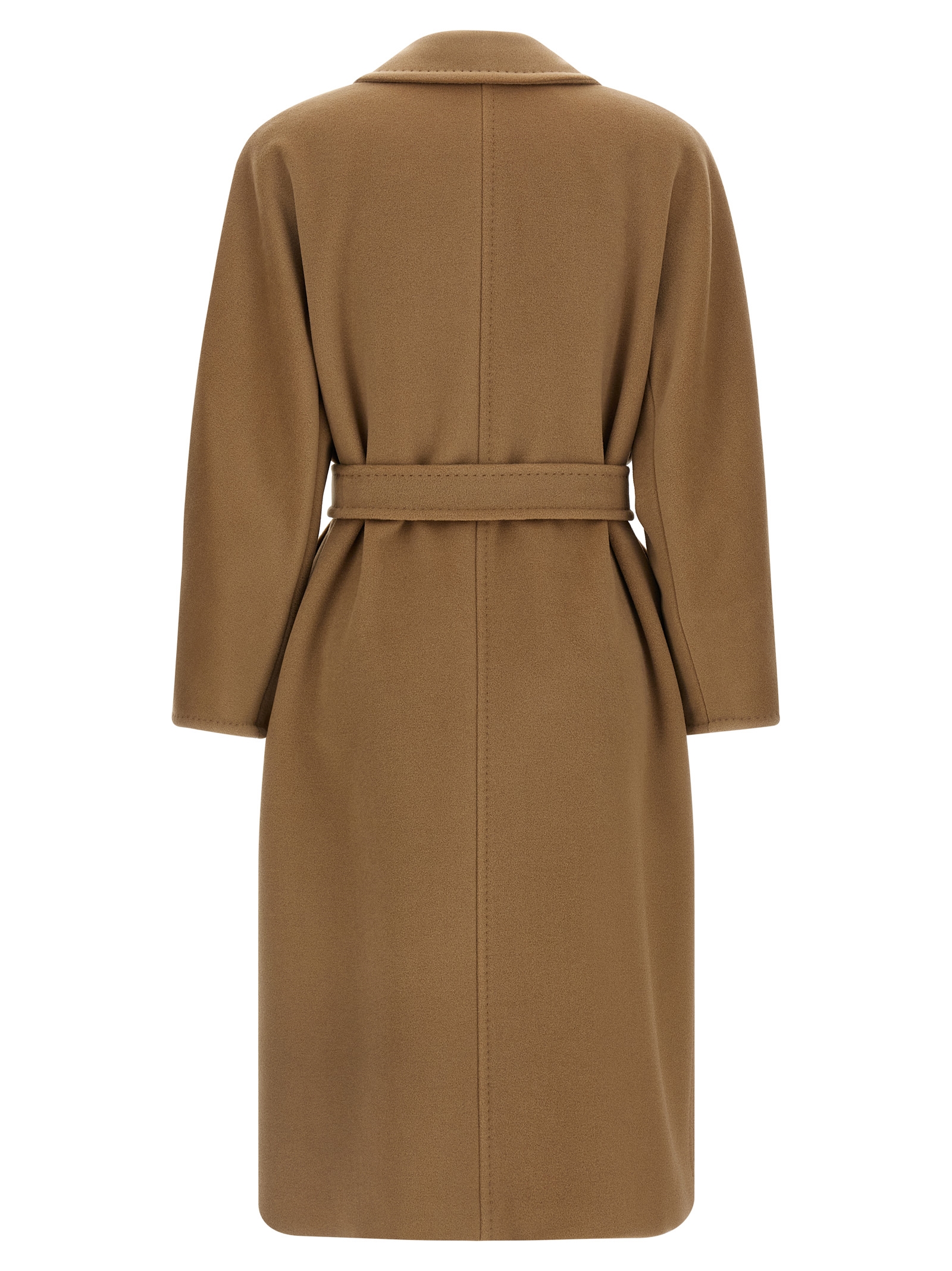 'Madame - 101801 Icon Coat' пальто з вовни та кашеміру з бобра, оброблене зшитими точками, двобортний стиль з передньою застібкою на гудзиках, кишені, довгі рукава-кімоно з відворотами, підкладка з монограми купро, знімний пояс.